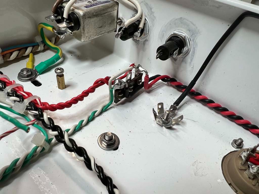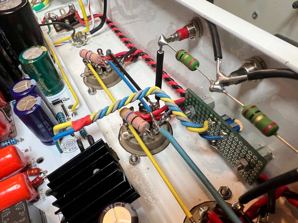 Ma sicuro! Fatto. Ok. ...Però L'ampli è muto. Dove ho sbagliato ? Quì, la massa. Ok. Aspè! ci sta pure sta cosetta che non va. Fatto. Tutto perfetto!
