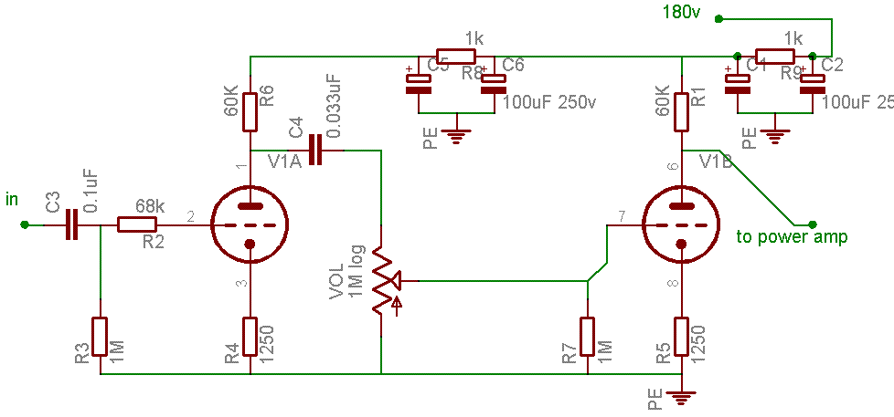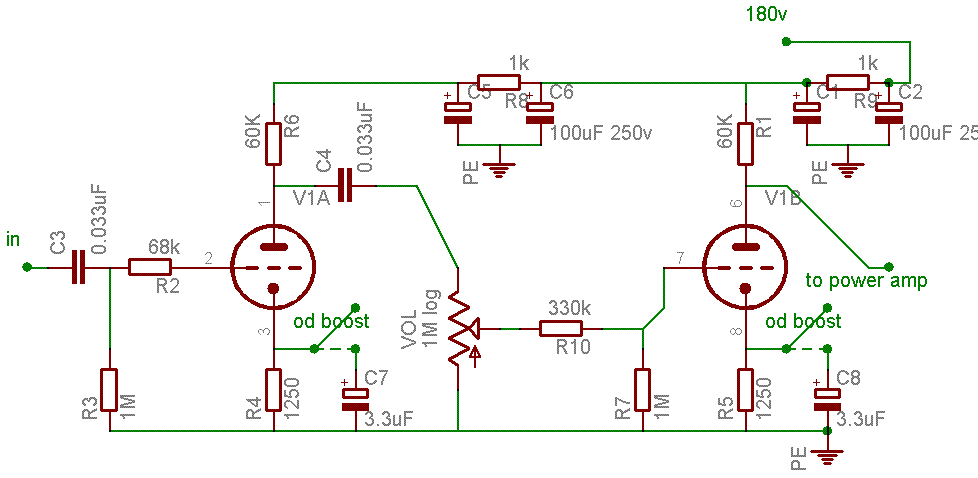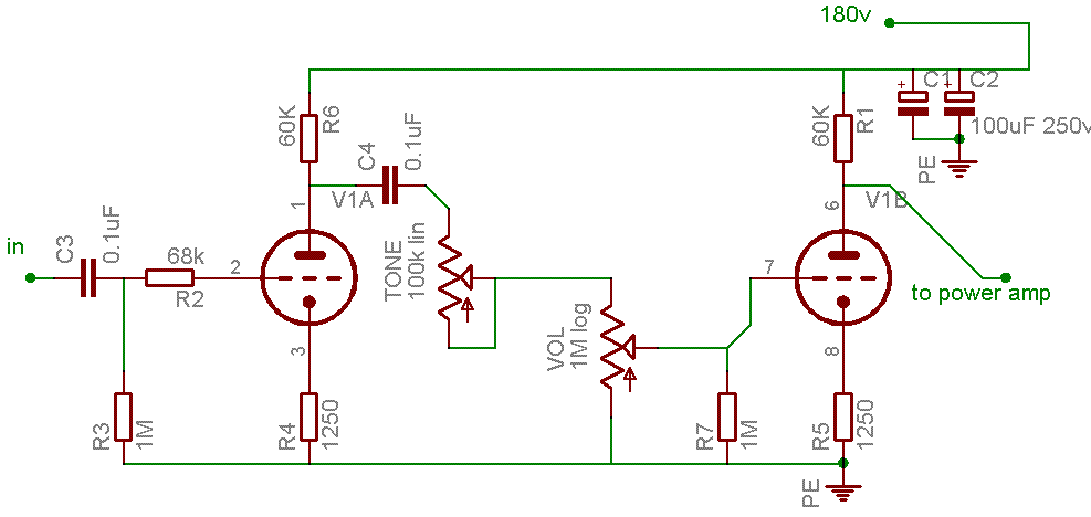 C'entra perchè ho potuto montare il prototipo del mio ampli SE da 1W con una 12AU7, funziona alla grande, ha un discreto volume ed una ottima saturazione (considerando che è solo il finale), molto indicato per suonare a casa senza farsi arrestare.... bando alle ciance ecco lo schema: