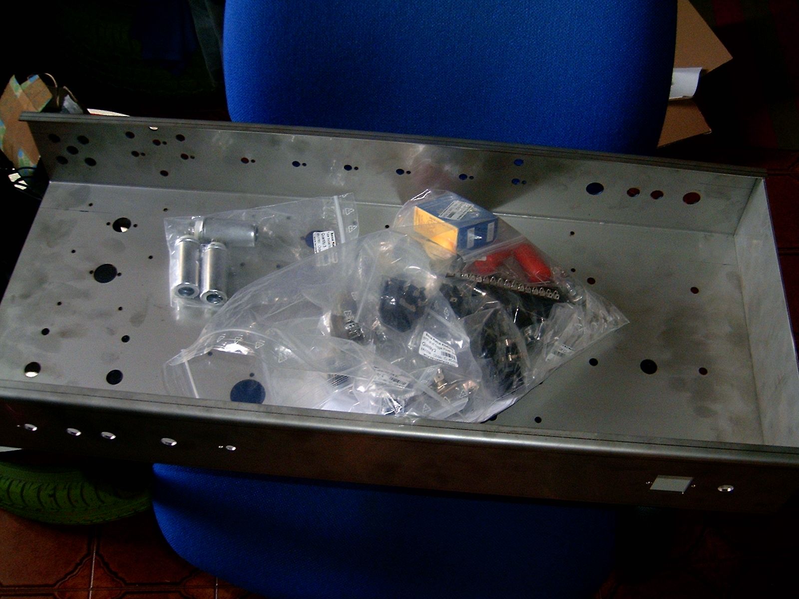 Sono in attesa che arrivi il materiale da Banzai...nel frattempo stò vedendo come fare lo chassis...dovrò farlo bello rinforzato dato ke deve reggere 14Kg di trasfo!!!