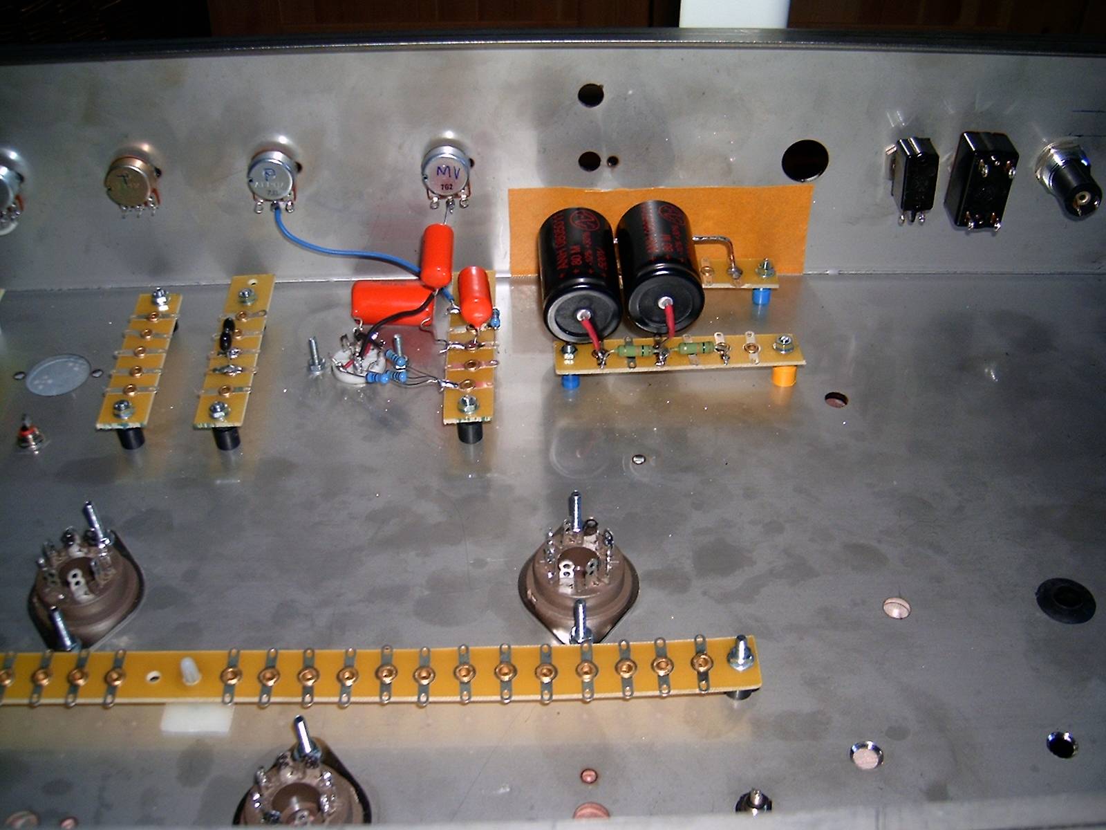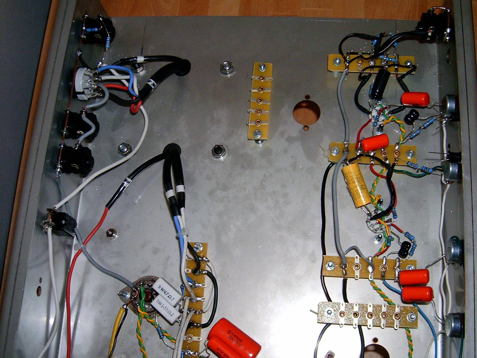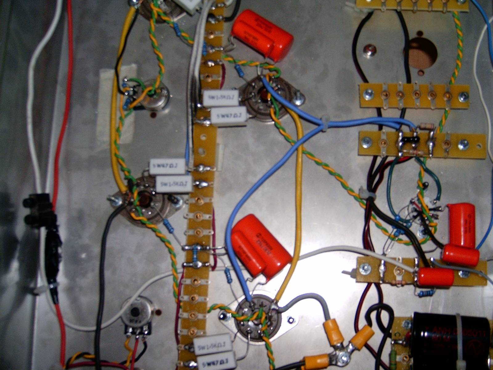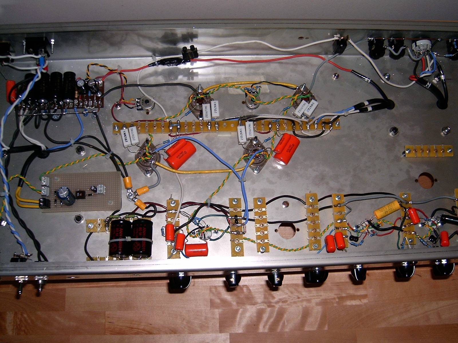 Per il layout ho seguito la disposizione dell'originale! eh si, xkè ho trovato un sito fantastico, con le foto molto dettagliate dell'interno di questo ampli...se volete dare cmq una controllata al layout, mi farebbe piacere. Devo finire di collegare bene la scheda di switching e la scheda di alimentazione dei relè; per il resto è tutto fatto.