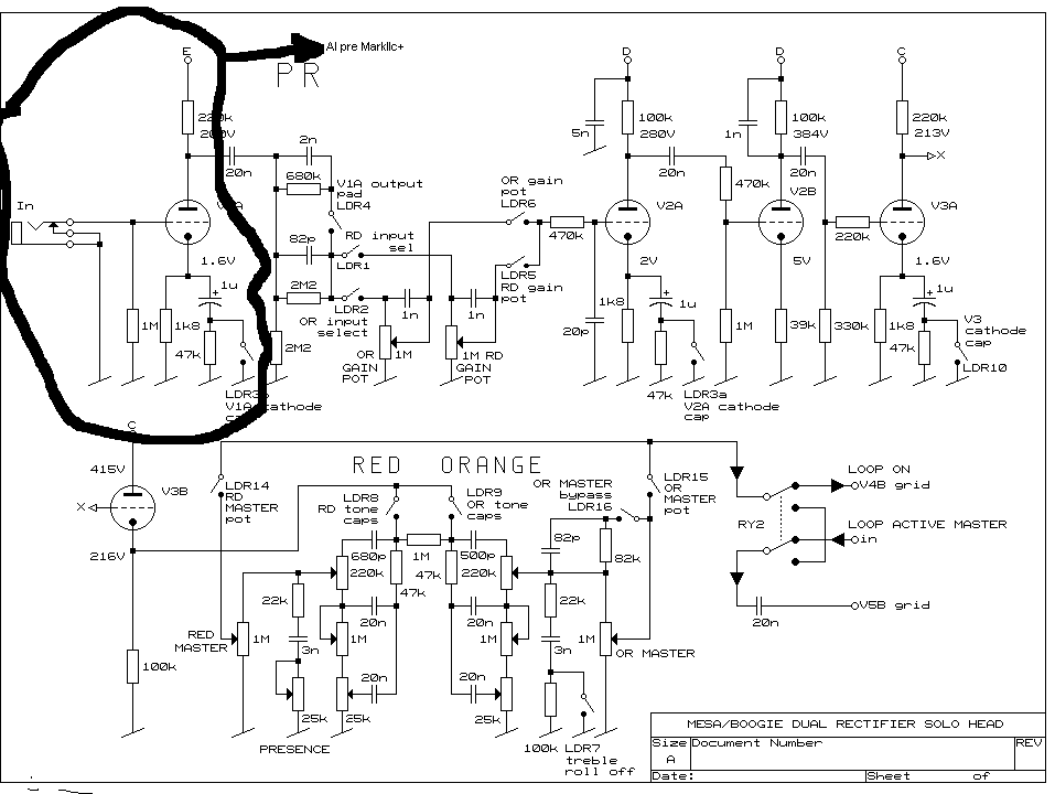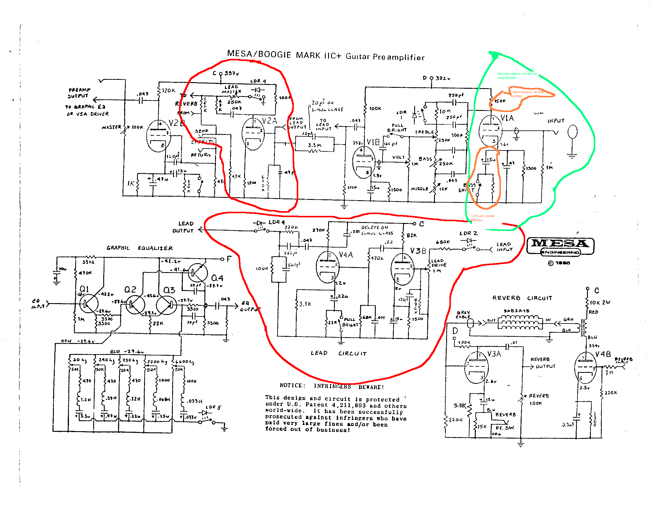 Ho dato un occhiata anche a cosa accoppiare come altri canali, il più semplice sarebbe il MarkIIc+, ovviamente sempre mesa anche le tensioni sono simili, con l'aggiuta di 2 triodi avrei l'intero preamp del IIc+.