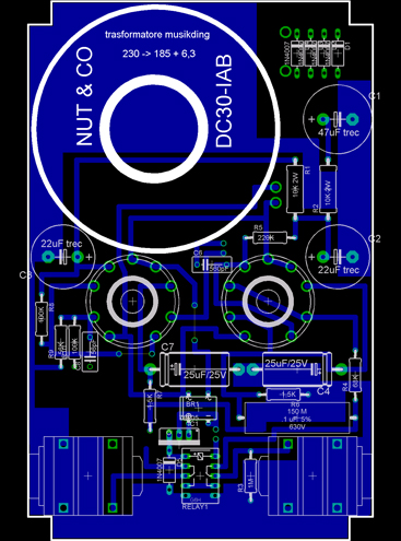 Ragazzi non ci credo quasi, ma con il trasformatore di musikding sto riuscendo a far stare tutto dentro il box 1590J, e su un solo layer !!!! Ancora non ho fatto tutti i collegamenti nel layout (sto facendo un preamp del matchless DC30, quello con le due 12ax7) ma mi sembra che tutto sta andando a posto.. Ovviamente la presa di corrente sarà col cavo che esce direttamente dal box.. è impensabile far stare anche la presa IEC!!