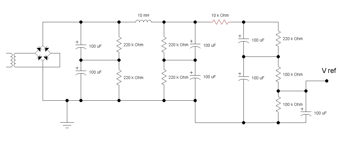 che è associato a 2 cap di filtraggio messi in serie... metto lo schema per rendere l'idea