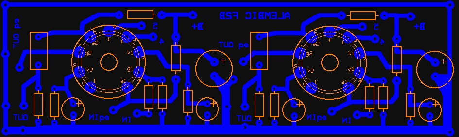 Questo il mio layout ( è senza nome per i componenti ma sono talmenti pochi che, schema alla mano, in 2 minuti si segnano ), l'alimentazione e l'EQ sono a parte.