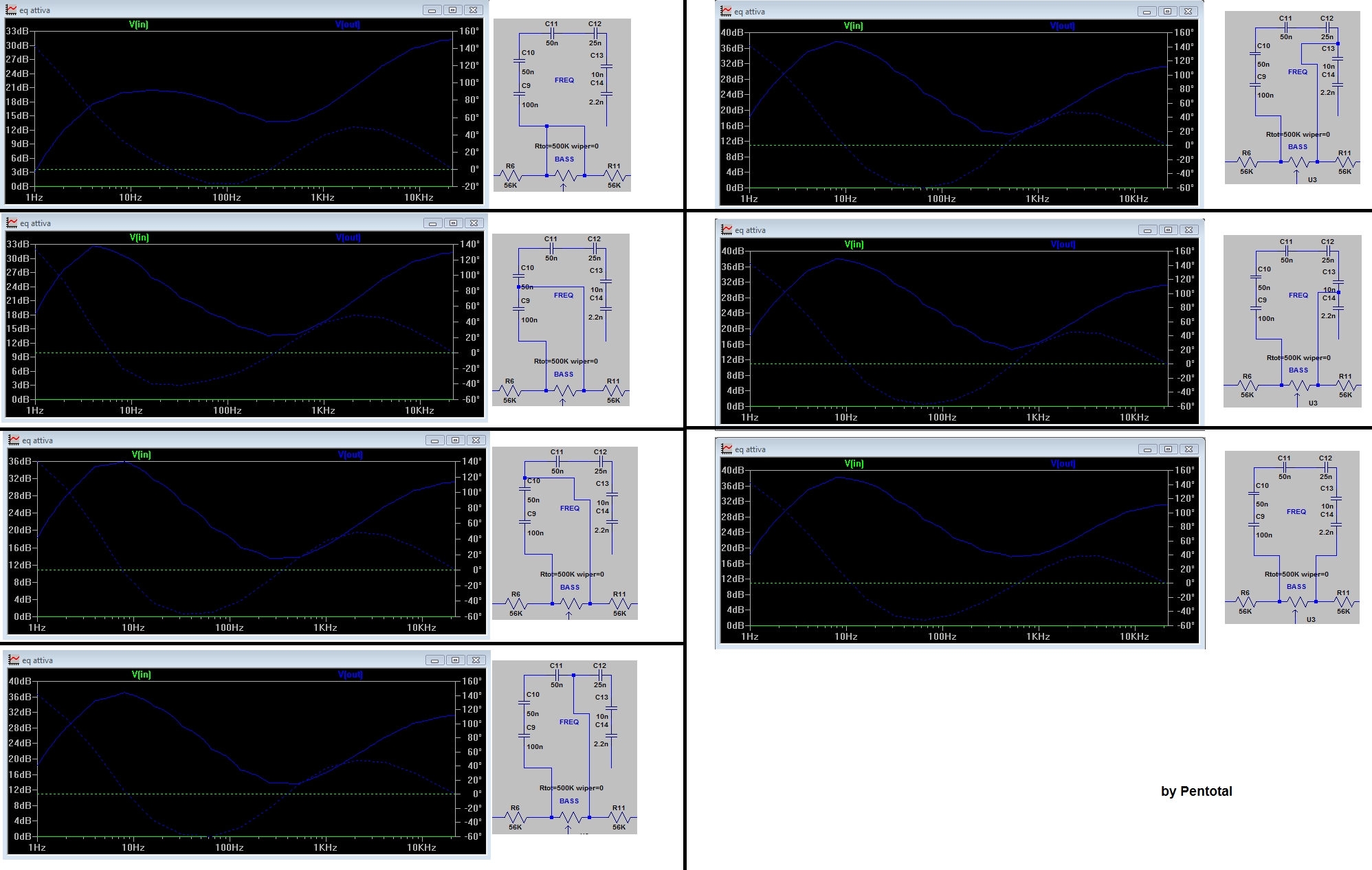 PS: vi allego i files dello schema e dell'emulazione con le varie configurazioni del selettore FREQ (i pot dell'eq sono in tutti i casi posizionati a formare il max slope sui medi, ovvero: Bass=1; Med=0; Treble=1)