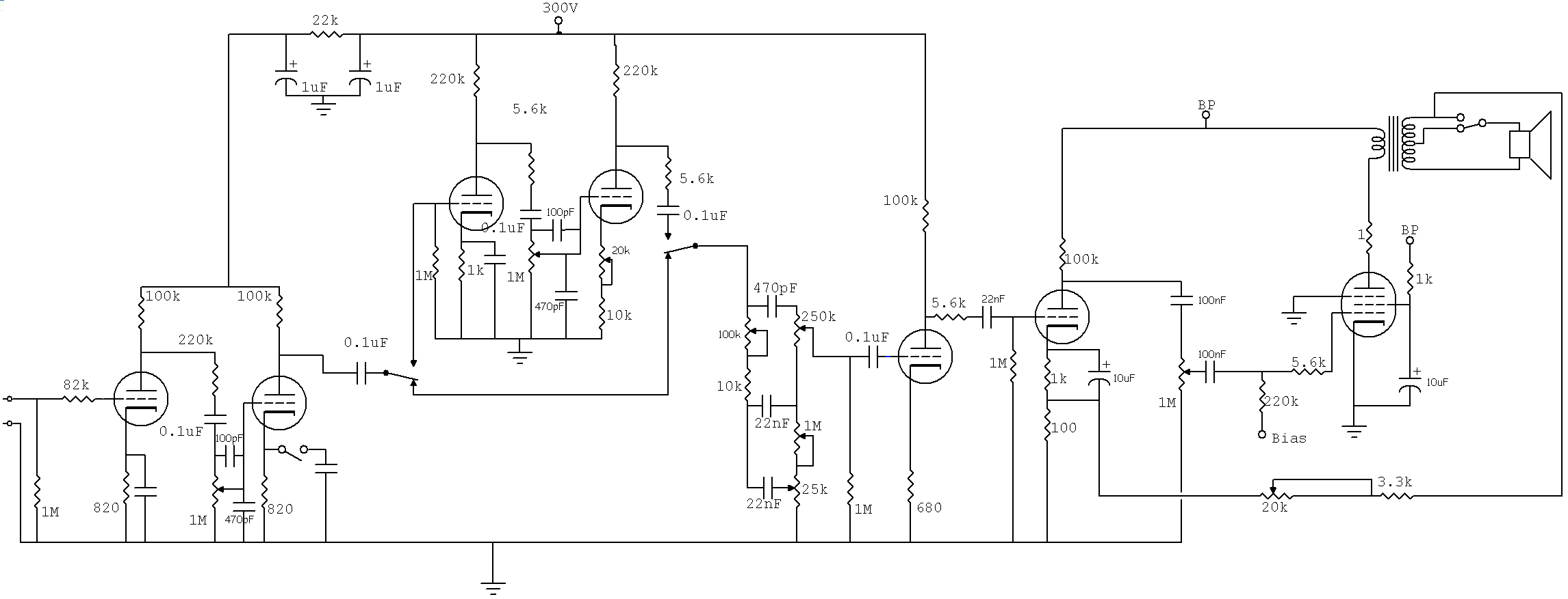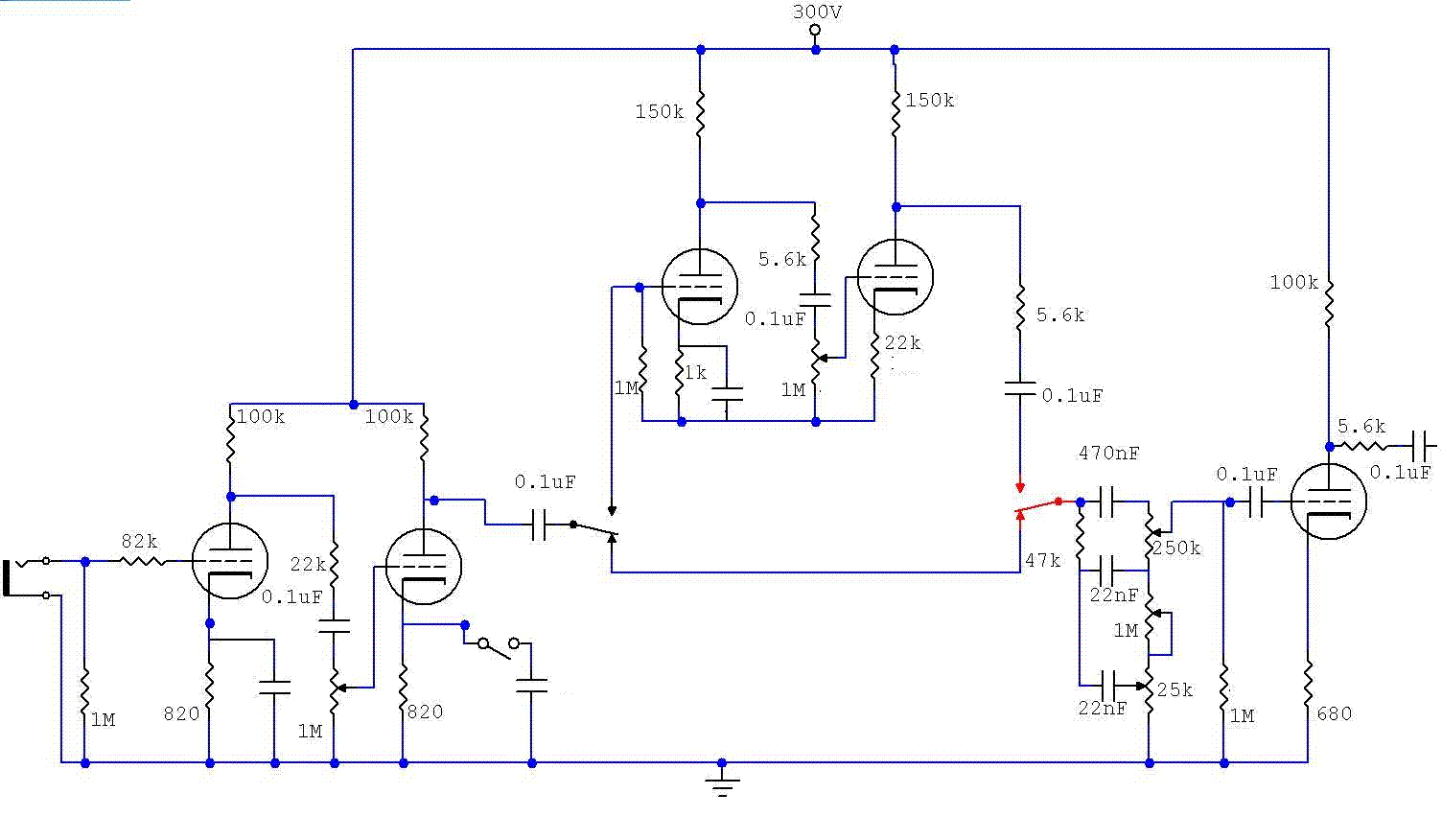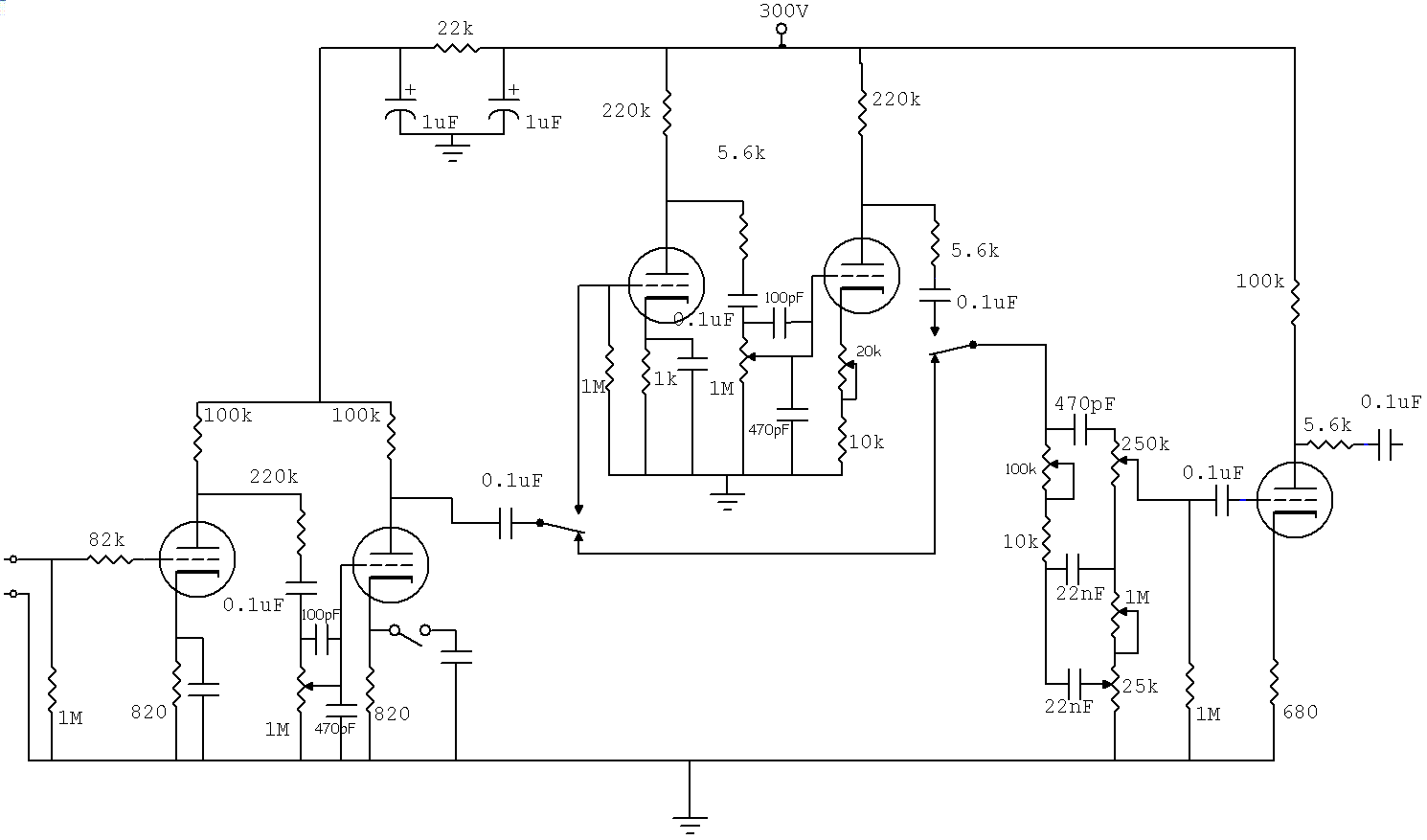 Io userei due tonestack uno per canale, poi fai come vuoi... ti consiglio caldament di mettere il pot da 100k al posto della 47k...