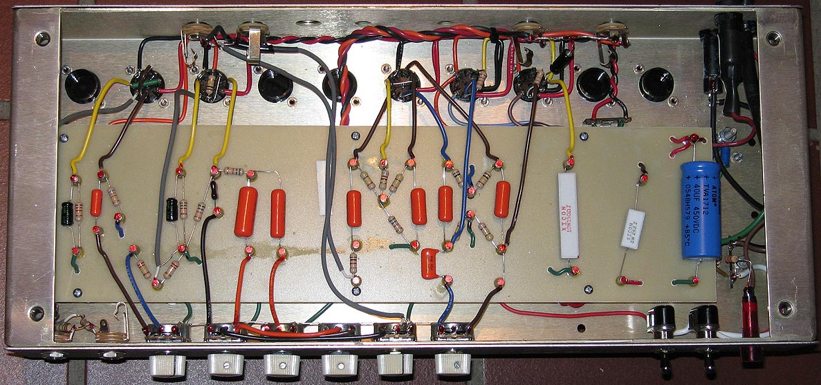 e' veramente un bell'ampli, a casa ho un po' di foto da cui ho ricavato lo schema, l'unica cosa che non ho e' il circuito di alimentazione, nel senso che lo ho dedotto ma che non lo so per certo.