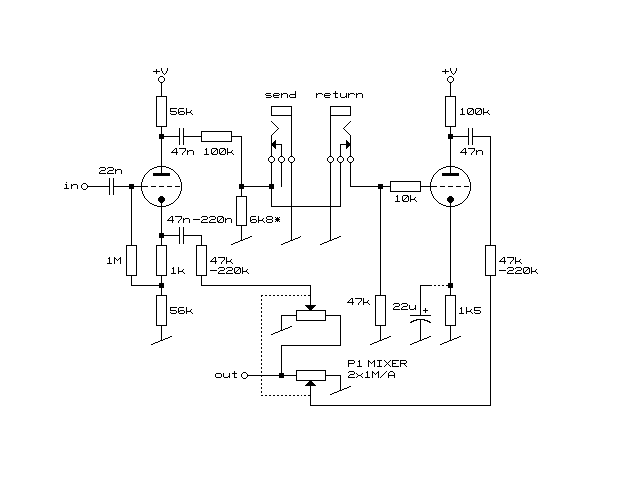 io direi di mettere un loop seriale all'uscita del pot dei treble,, con un partitore da definire,bufferizzato con un triodo, e regolazione dei livelli di in e out...il loop parallelo può andare incontro a problemi di fase e di taratura e sinceramente a meno che tu non voglia copiare il loop di un ampli già conosciuto, non saprei come aiutarti...