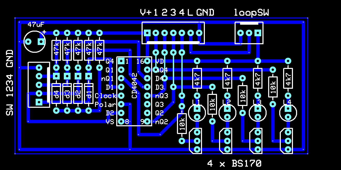 seconda PCB con un sistema di encoder basato su porte logiche OR (CD4071). il controllo per i 4 canali utilizza in questo caso 2 uscite