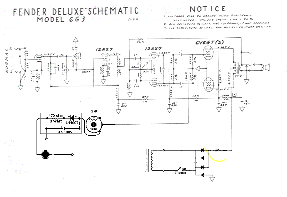 Adesso mi metto a fare un layout scopiazzando quello fender e togliendo le cose che non servono e aggiungendo ponte di diodi e sag resistor... Grazie mille K!