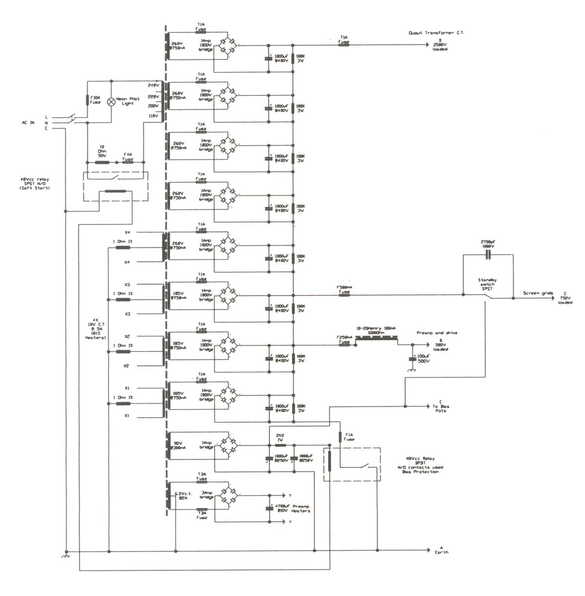 Tutto ciò che sono riuscito a trovare è che le due el34 sull'anodo hanno ben 640v, e osservando i condensatori dei due secondari che dovrebbero fornire tutti questi volt in teoria non si dovrebbe andare oltre i 175 l'uno.