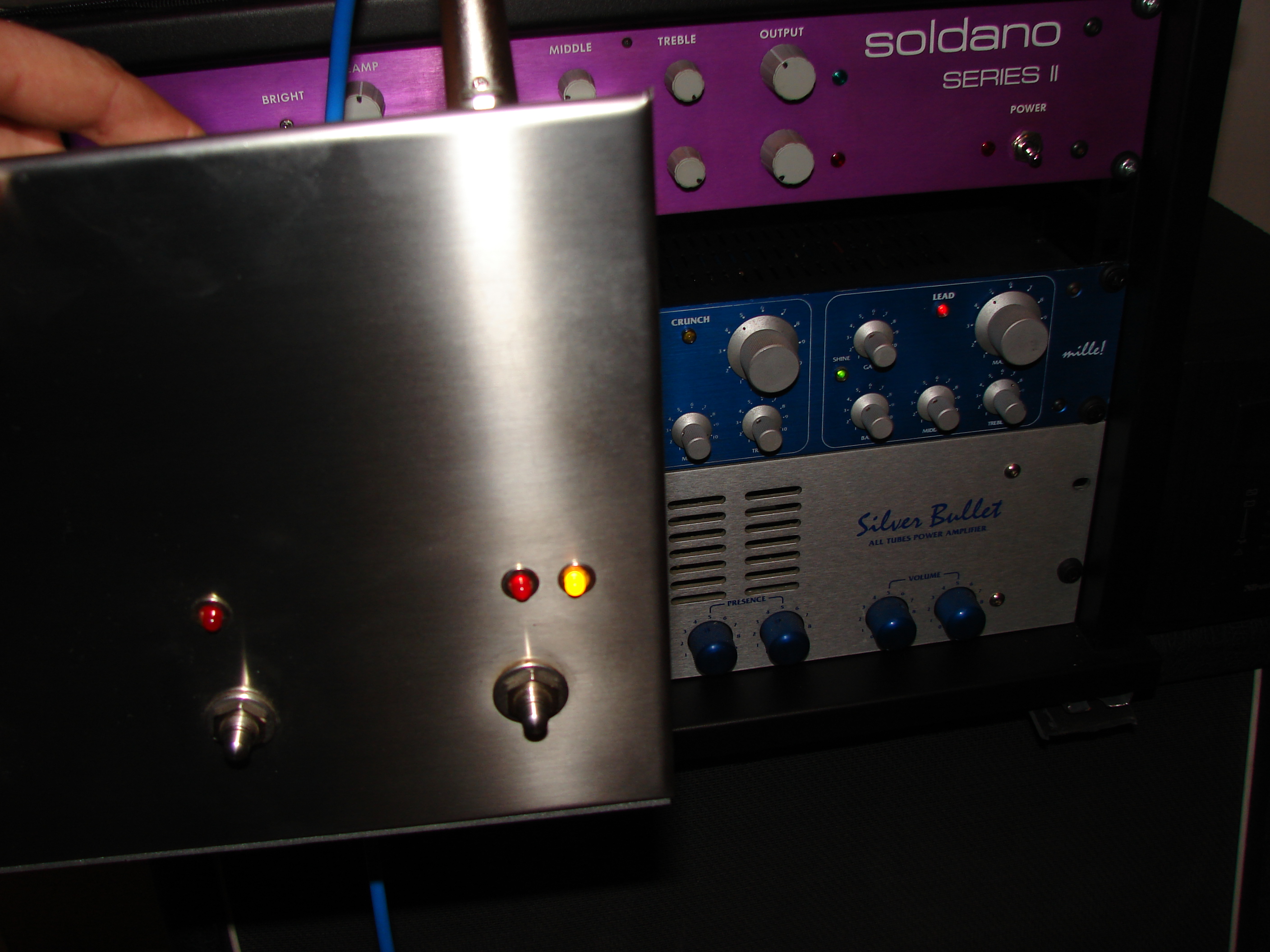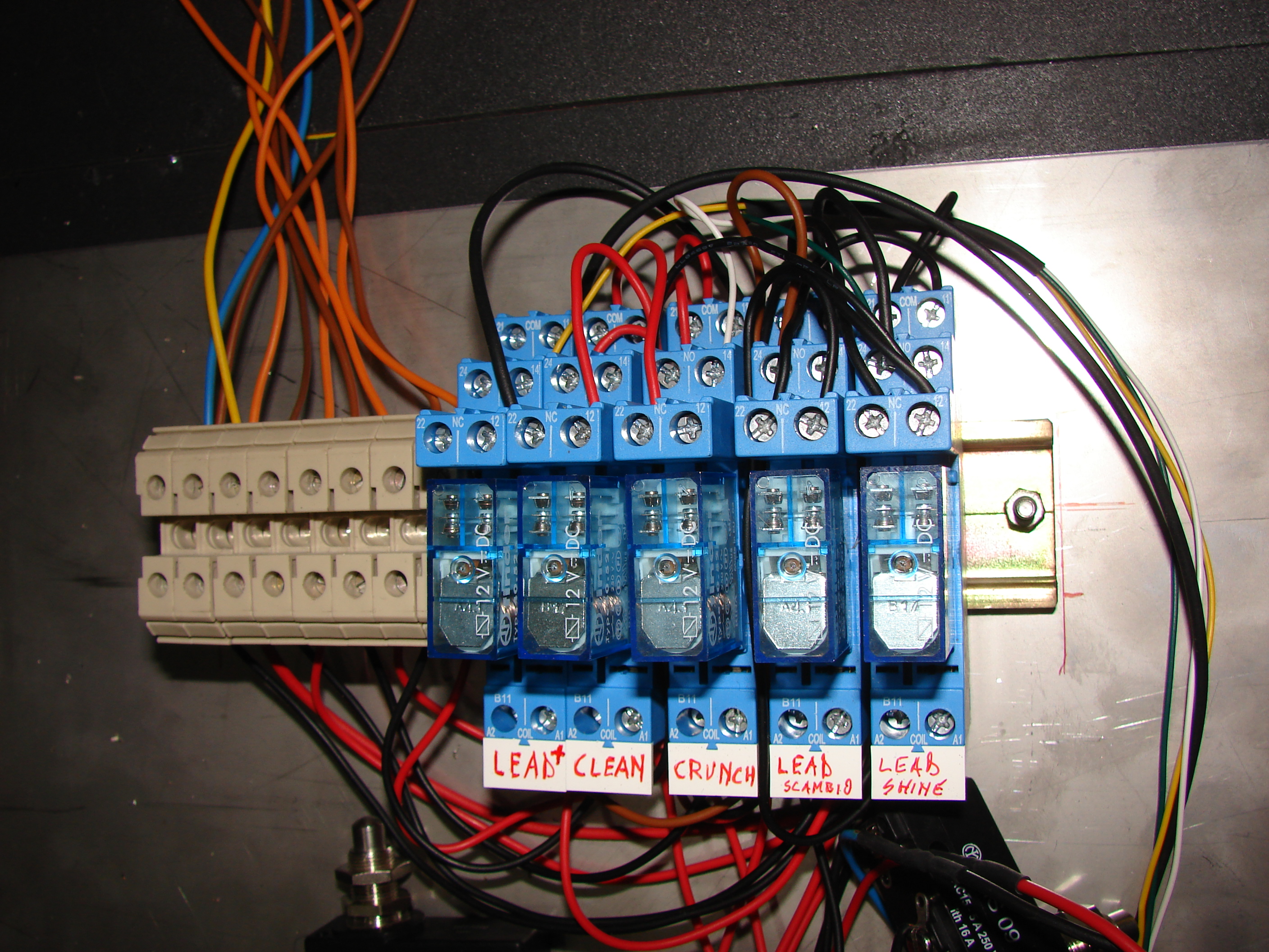 qualsiasi midi switcher,ce ne sono a decine,oppure multieffetti tipo G Major o pedaliere tipo Beringer o Proel che hanno contatti in uscita.