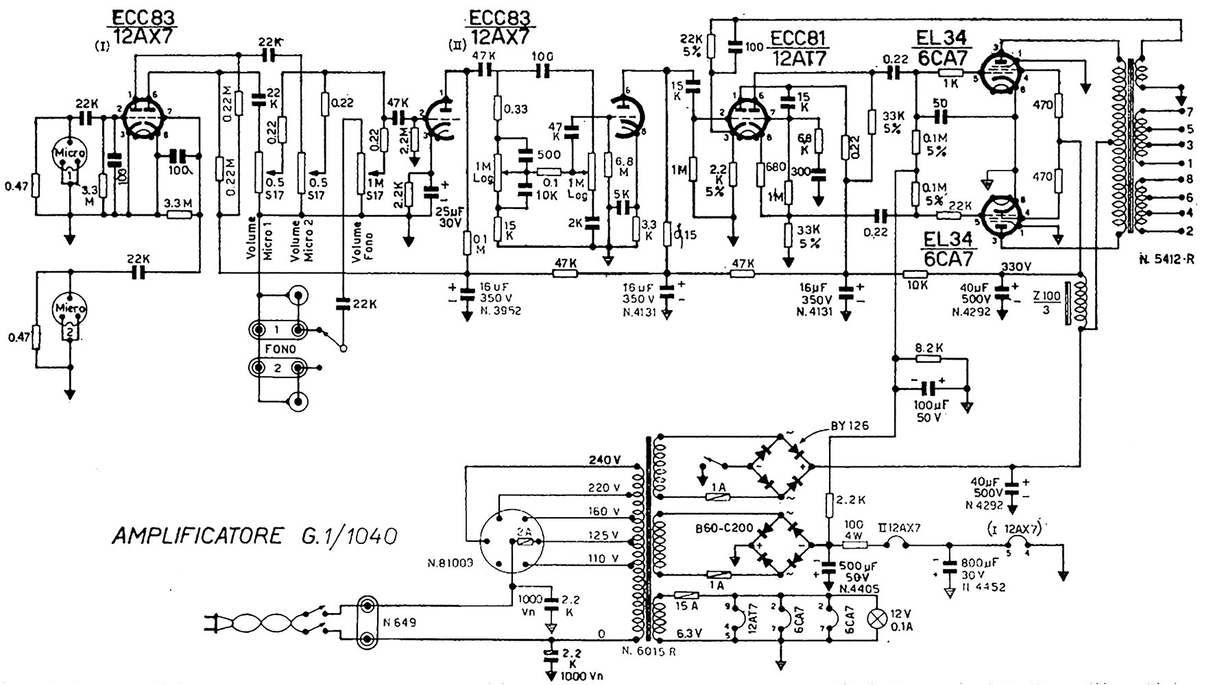Allego lo schema originale dell'ampli e lo schema di base con le modifiche alla sezione preamplificatrice.