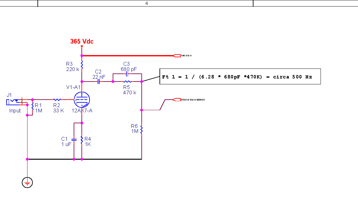 Per il condensatore da 680 pF ( Cs ) in parallelo con la resistenza di 470 Kohm ( Rs), La frequenza di taglio è data dalla formula: