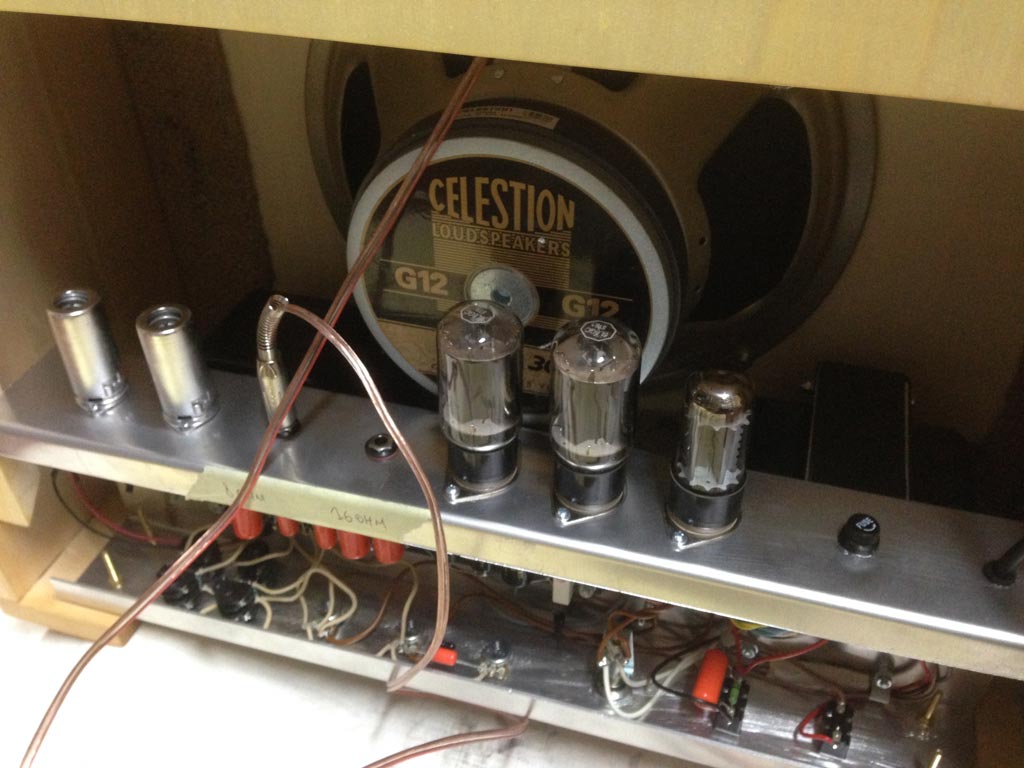 Ho appena ultimato ed "inscatolato" il mio clone 5E3 con finale modificato per ottenere 46W! Provato con uno speaker esterno tutto OK! Quando invece l'ho inserito nel suo cabinet sono sorti i problemi! Dopo un po' che suono inizia un fischio che non smette finche non lo metto in StandBy. In fase di progettazione non ho pensato a spostare le valvole verso i lati per tenerle lontane dal magnete del cono e nemmeno a decentrare il cono come si vede nei 5E3... Ho pensato che questo potesse essere il problema e probabilmente lo è ma non il solo perchè collegando l'ampli ad uno speaker esterno il problema non si presenta e quindi la vicinanza delle valvole al magnete da sola non basta a generare il "rientro"!