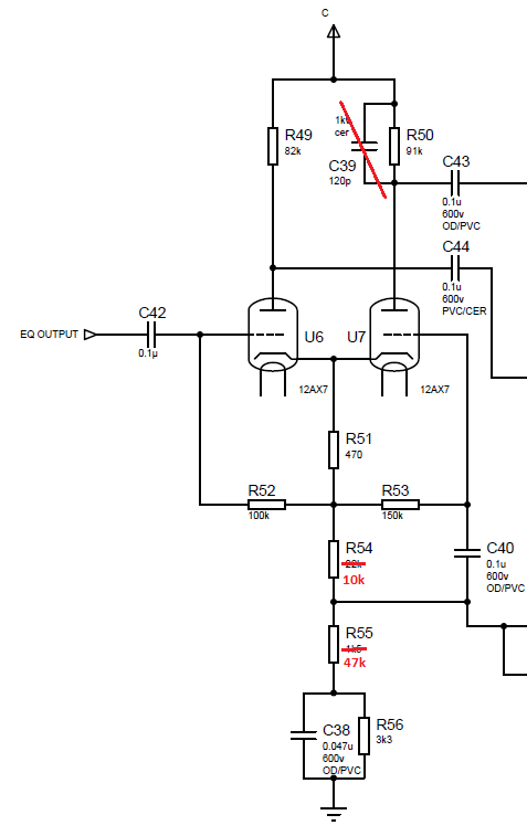 Tolto il 120p per smussare il picco sugli alti che erano un po' troppo stridenti, cambiate le 2 res di Tail per diminuire lo swing di tensione.
