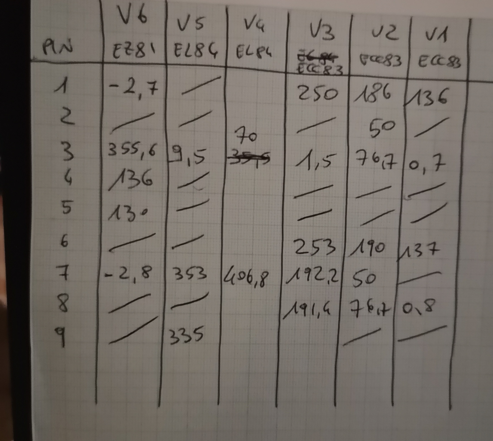 Allego le tensioni misurate. Non fare riferimento a v4 perché mancava l'input dell'anodica (avevo dimenticato di saldare i cavetti che vanno da v5 a v4). La cosa che mi pare strana sono le tensioni su v3
