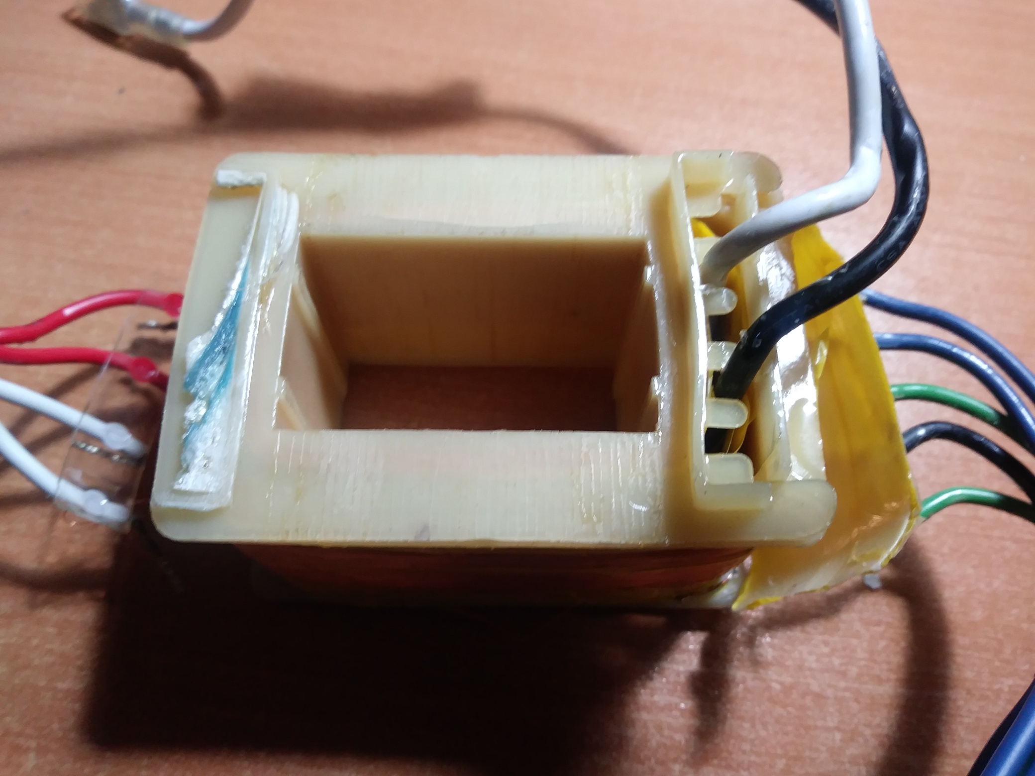 Ora ho rismontato il trasformatore ed ho tolto il termofusibile così come consigliato da Savino Luce di InMadout, costruttore di trasformatori. Sto rimontando tutto di nuovo.