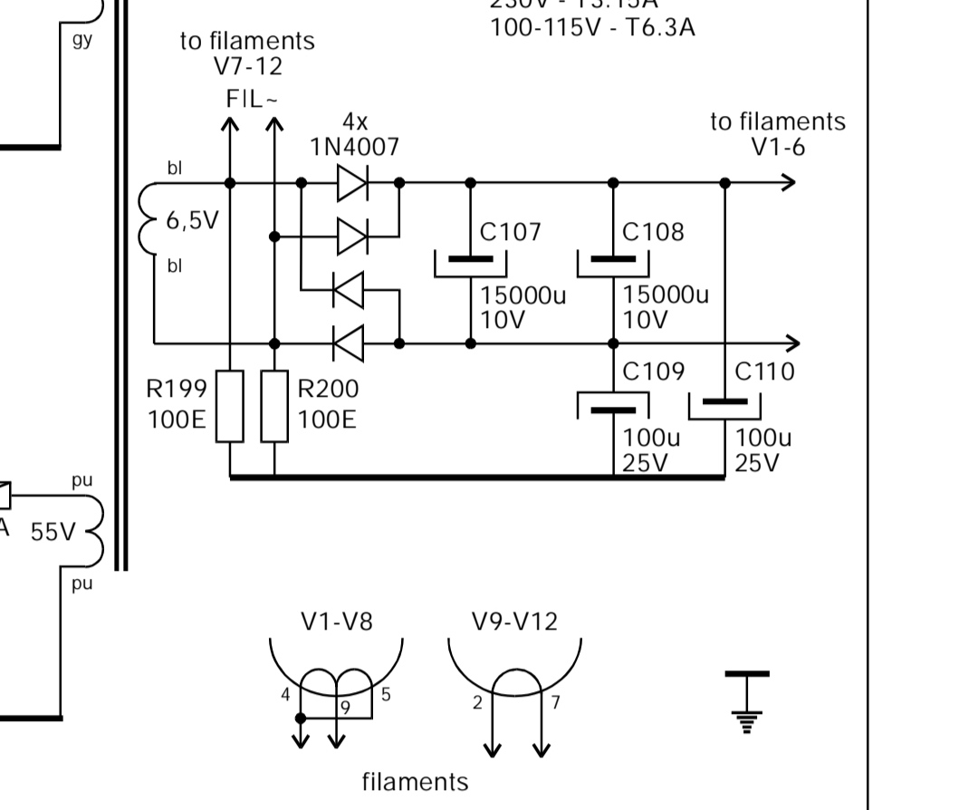 In effetti suona strano l' uso di 1N4007 per i filamenti da V1 a V6