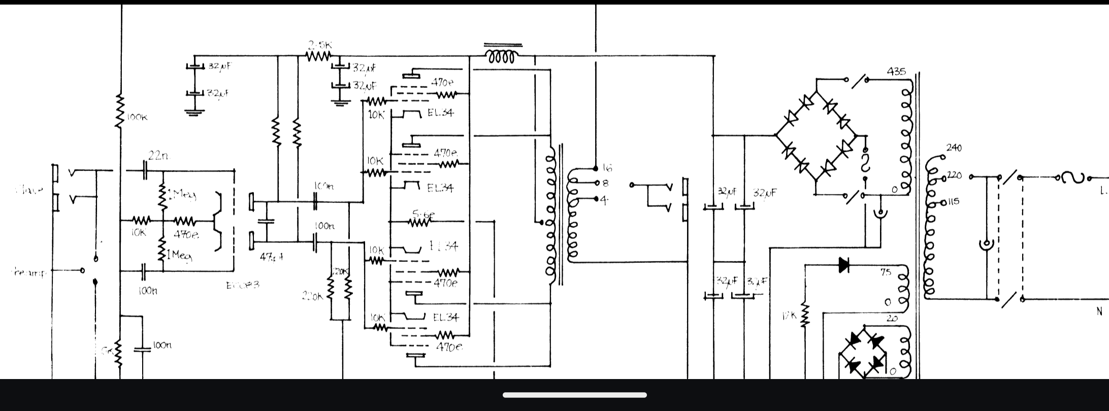 Tutto secondo valori tranne la sezione in foto...valori molto più alti per gli elettrolitici (220uf invece che 32uf) e un raddrizzatore con i soliti 4 4007 invece che quel ponte a 8 che non capisco.