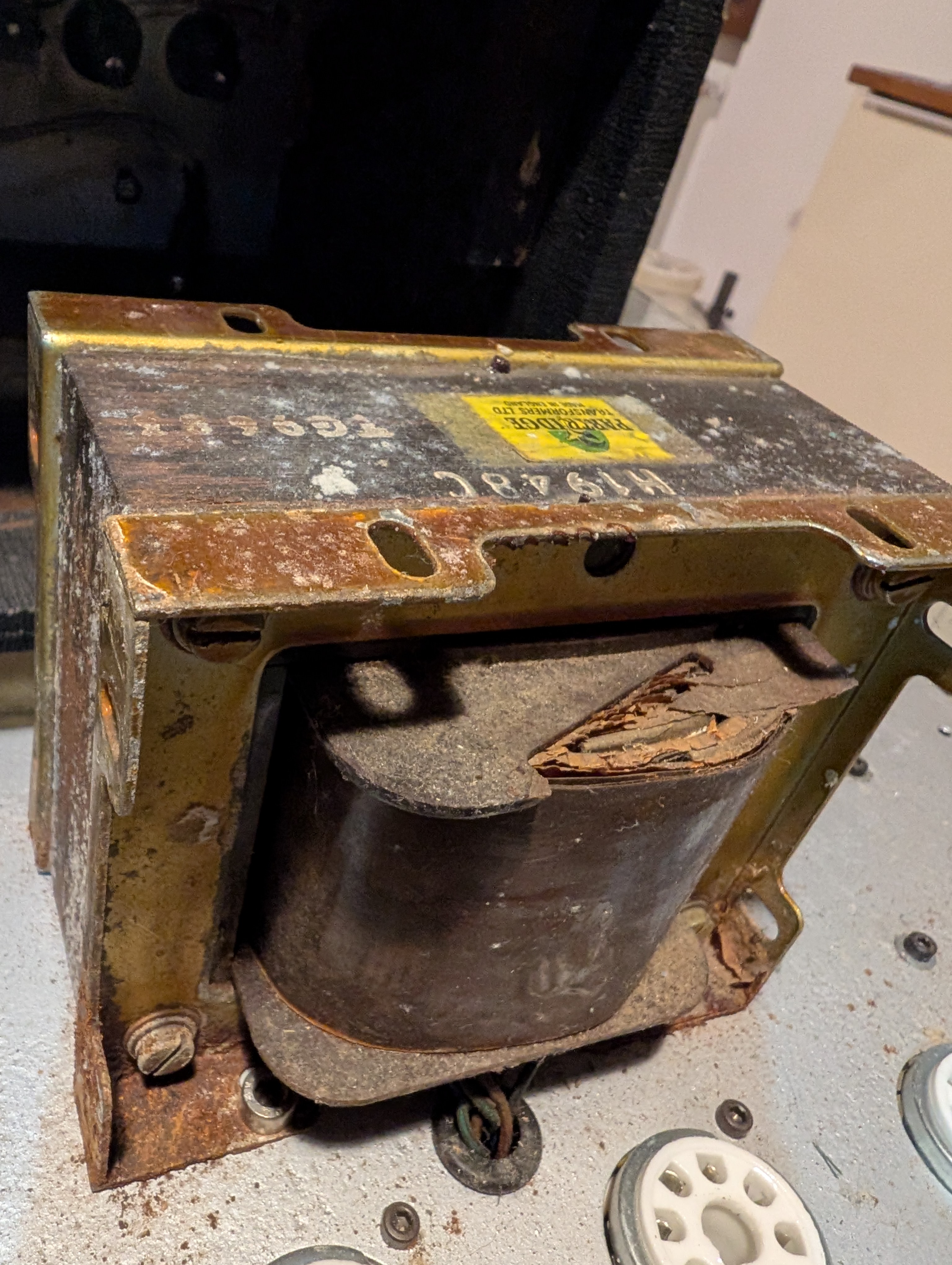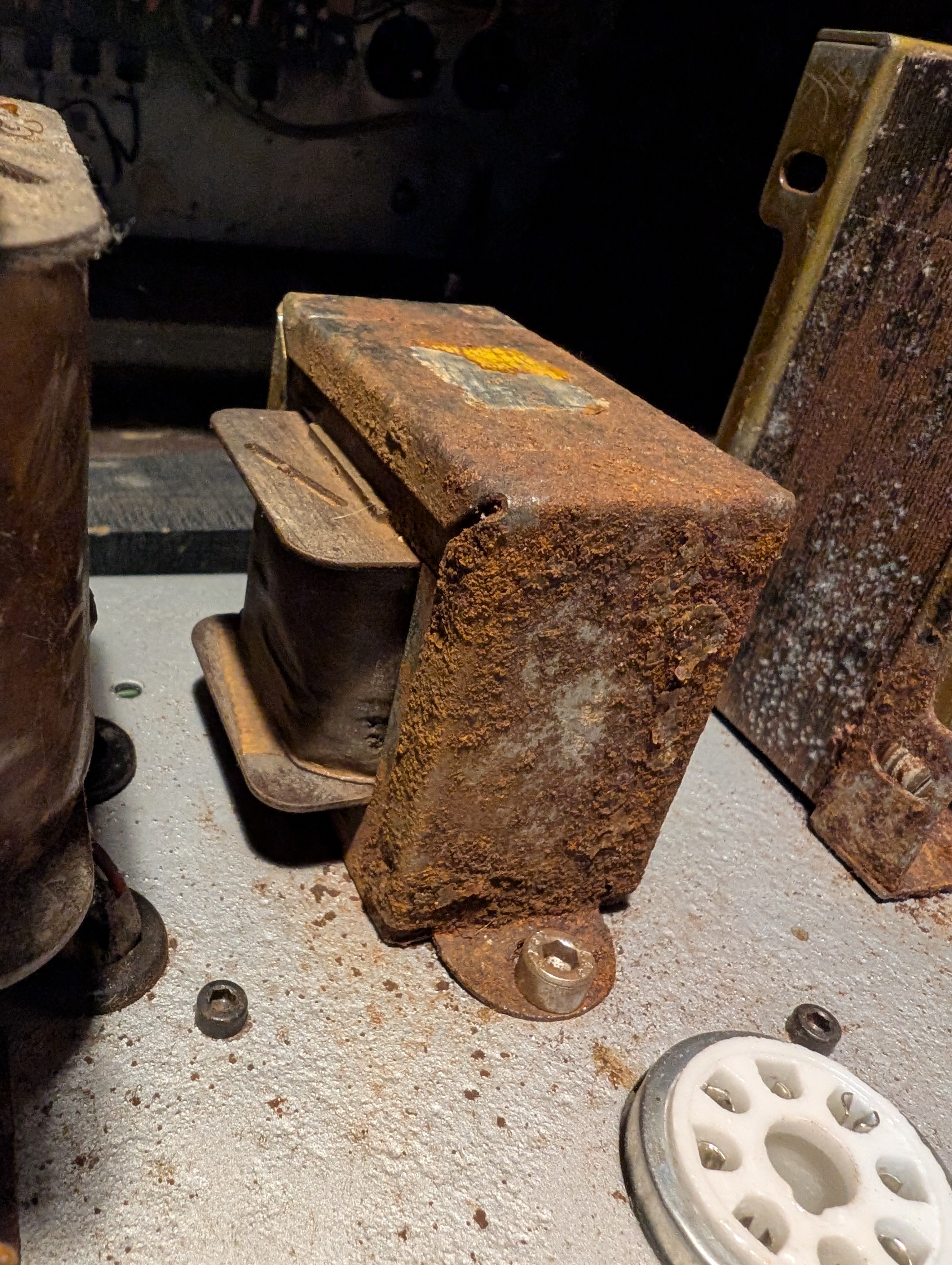 Per quanto riguarda i trasformatori sono ok tranne il choke che è molto arrugginito.. secondo voi potrei sostituirlo con quale? L'induttanza non è indicata in schema l'originale è un partridge tg9688 ma nn trovo info. Allego foto. Grazie mille