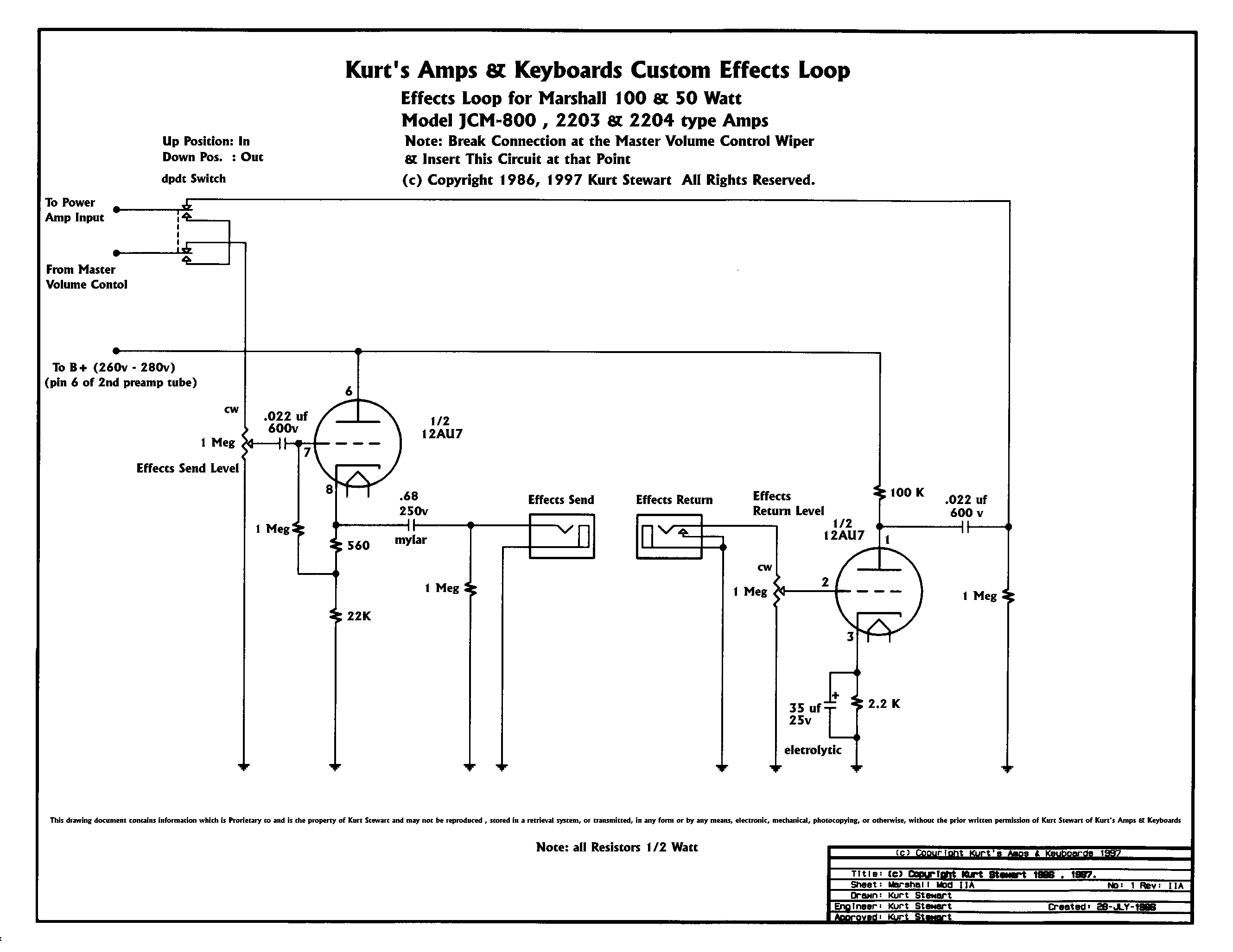 ciao ragazzi, dopo 2 anni torno su questa pagina, dopo aver studiato le valvole per un bel pò, aver fatto pratica col mondo valvolare e aver costruito 2 amp :) pubblico lo schema (visto che me lo hanno chiesto) del loop del jcm 800... vi assicuro che è il migliore per l'800 trasparentissimo e suona da dio... per chi potesse servire eccolo qui :)