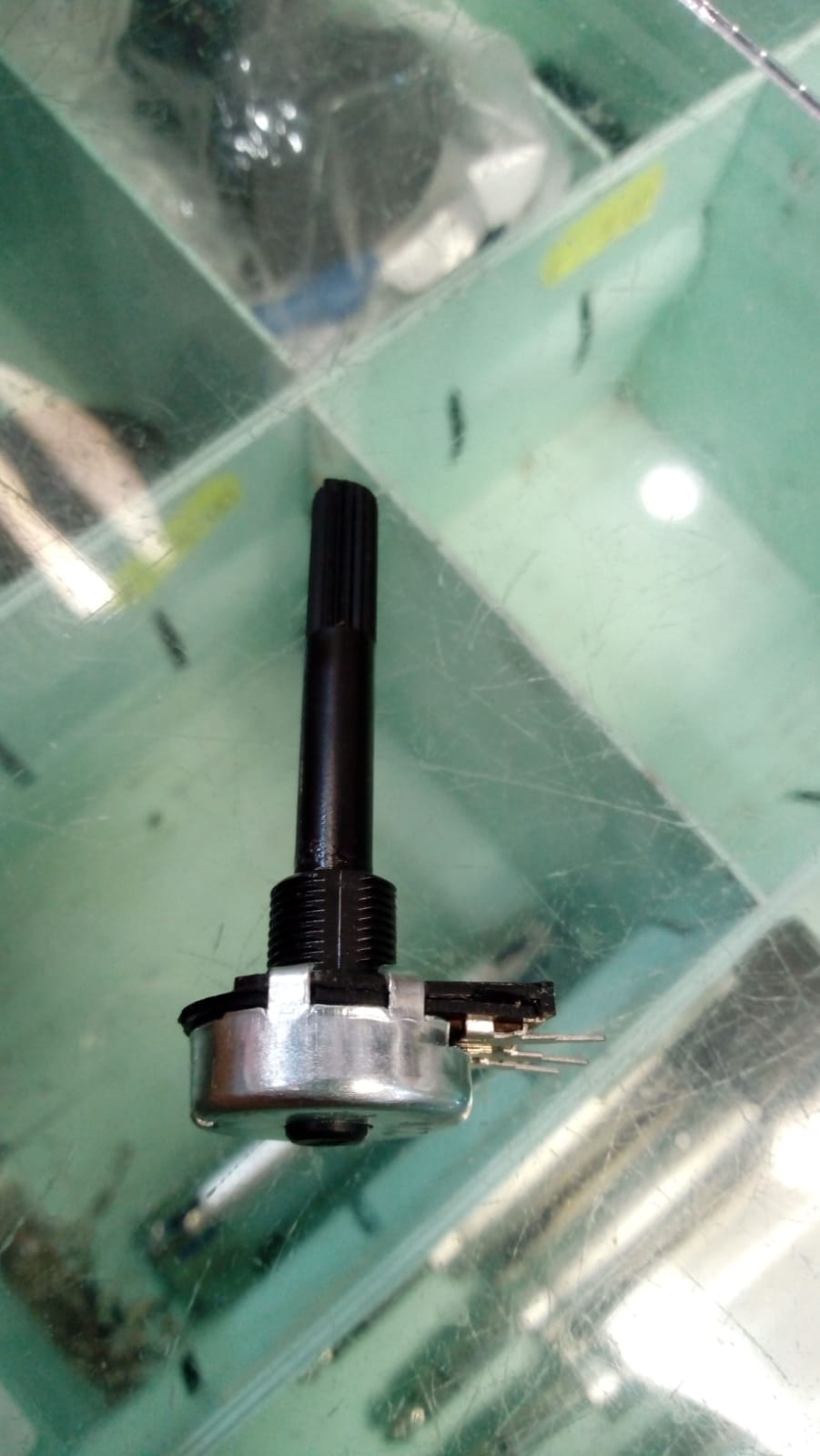 il pot da 25K lineare, non logaritmico, per la prova va bene uno qualsiasi, per lasciarcelo uno buono, un 24mm ALPS potrebbe andare, l'altro, quello con il perno corto e l'intaglio per il cacciavite, ancora meglio