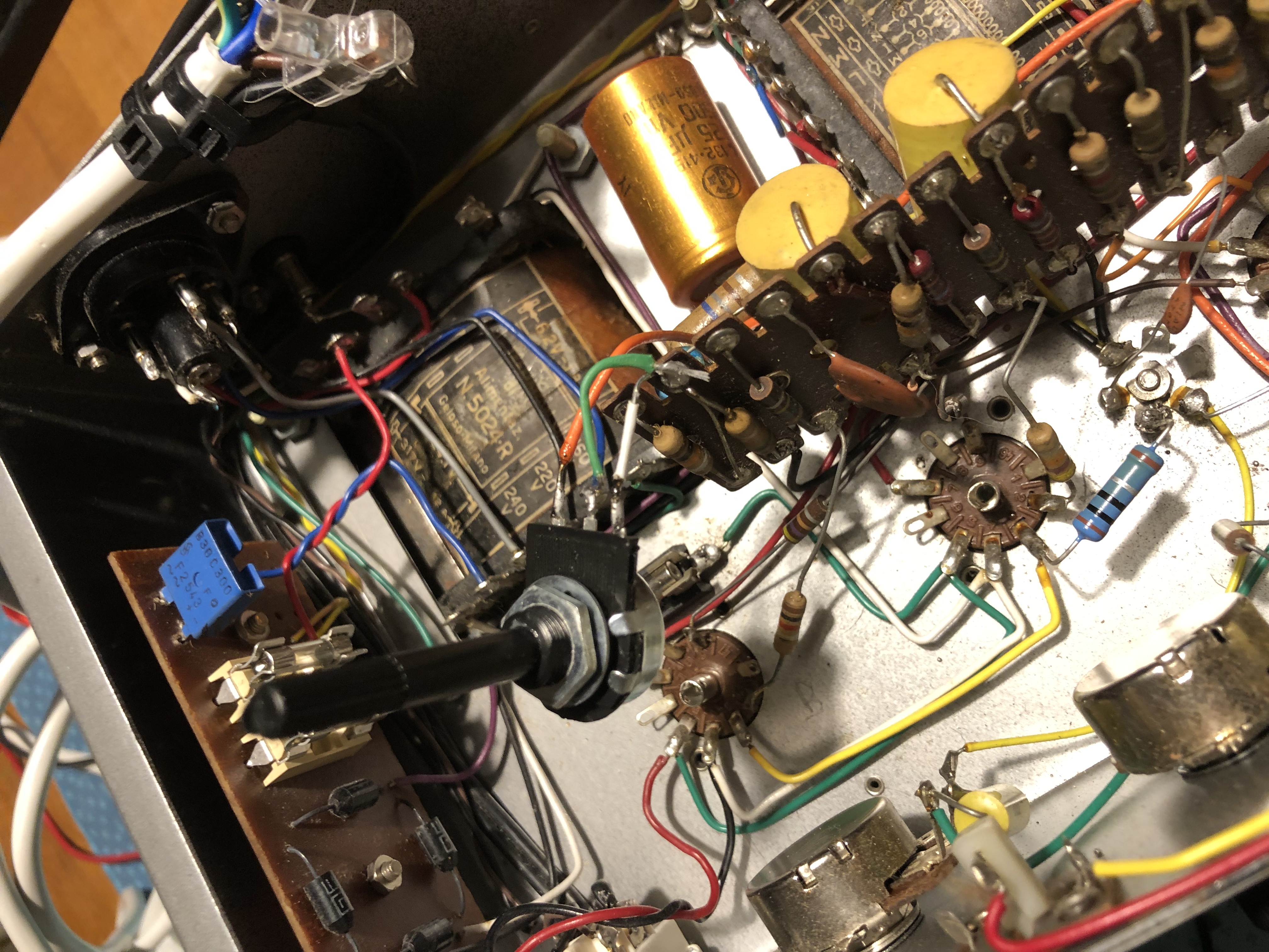 Nella mia idea sarà posizionato sul Top dello chassis, vicino agli zoccoli delle finali e togliendo la griglia che sta sopra lo chassis si potrà fare la regolazione (andranno messe delle mini prese a banana per fare le letture con il tester, sia i volt negativi che la corrente di catodo misurando ai capi della res da 1R)