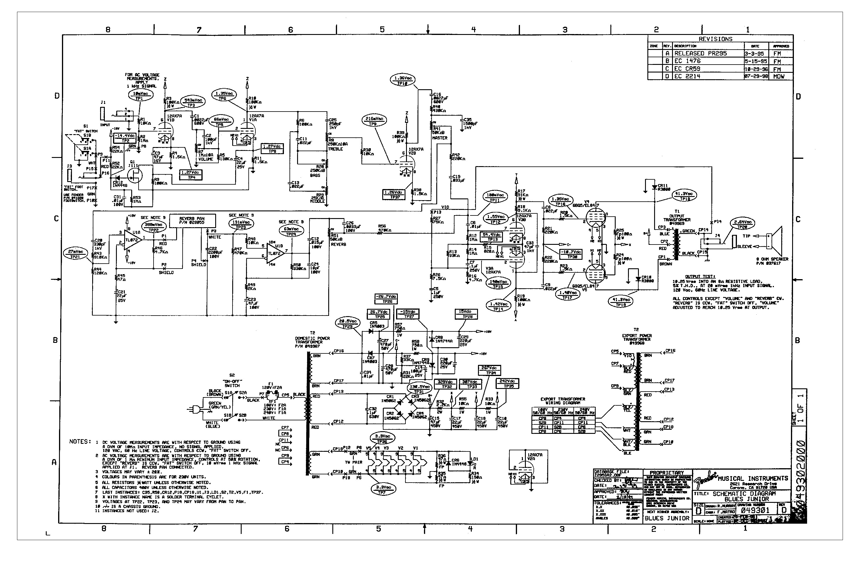 In ogni caso ecco lo schema del Blues Junior con i suoi -10.7v di Fixed Bias