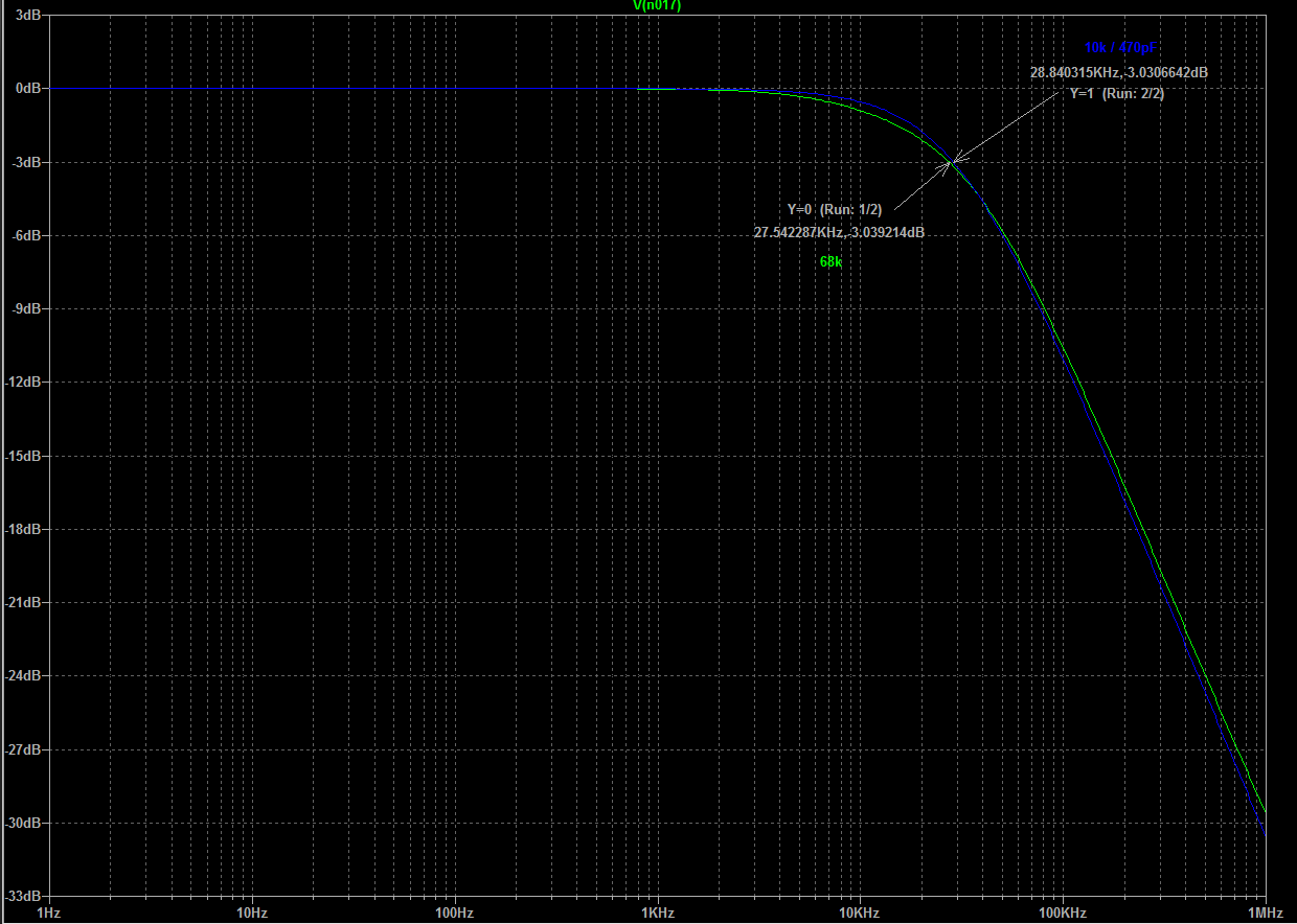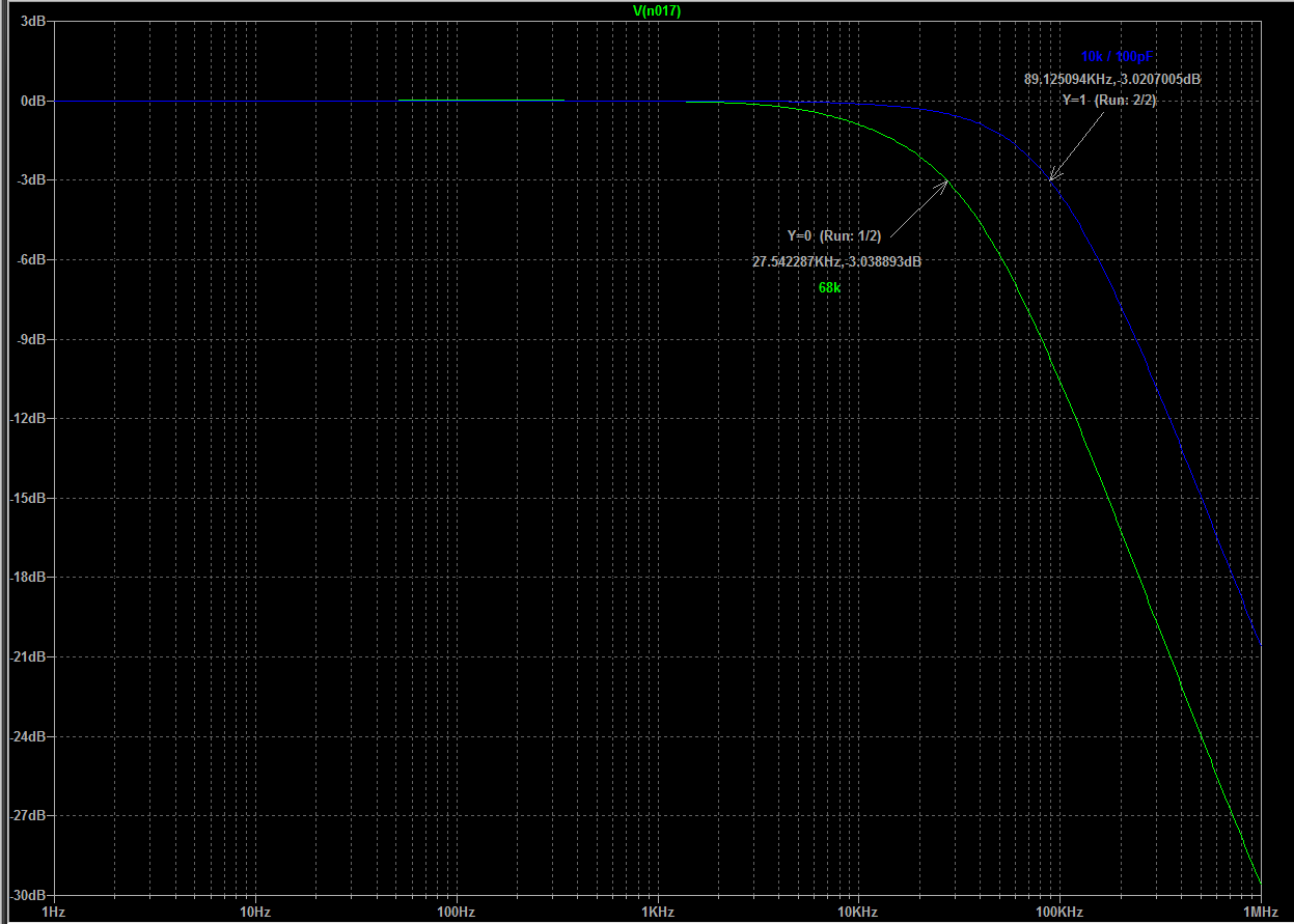 Oppure andare di 22k / 250 pF.