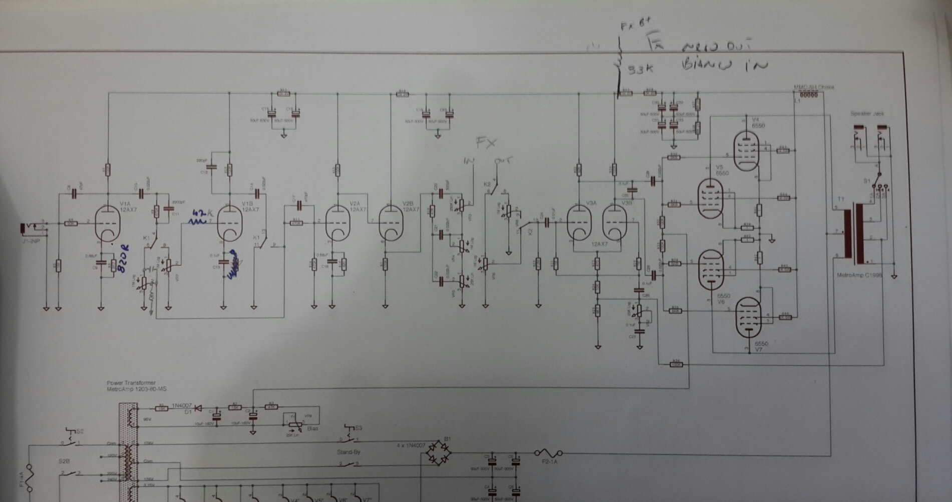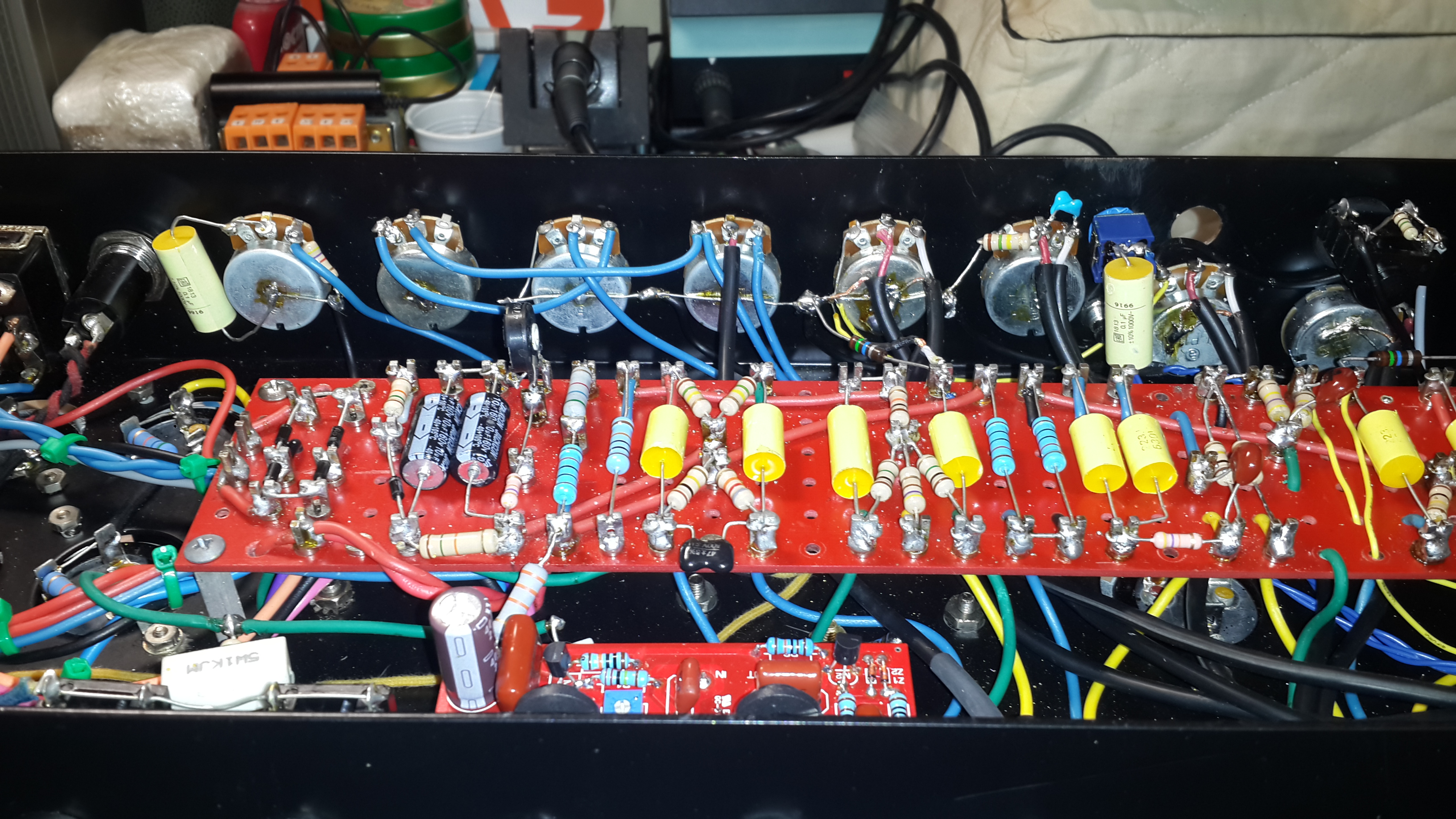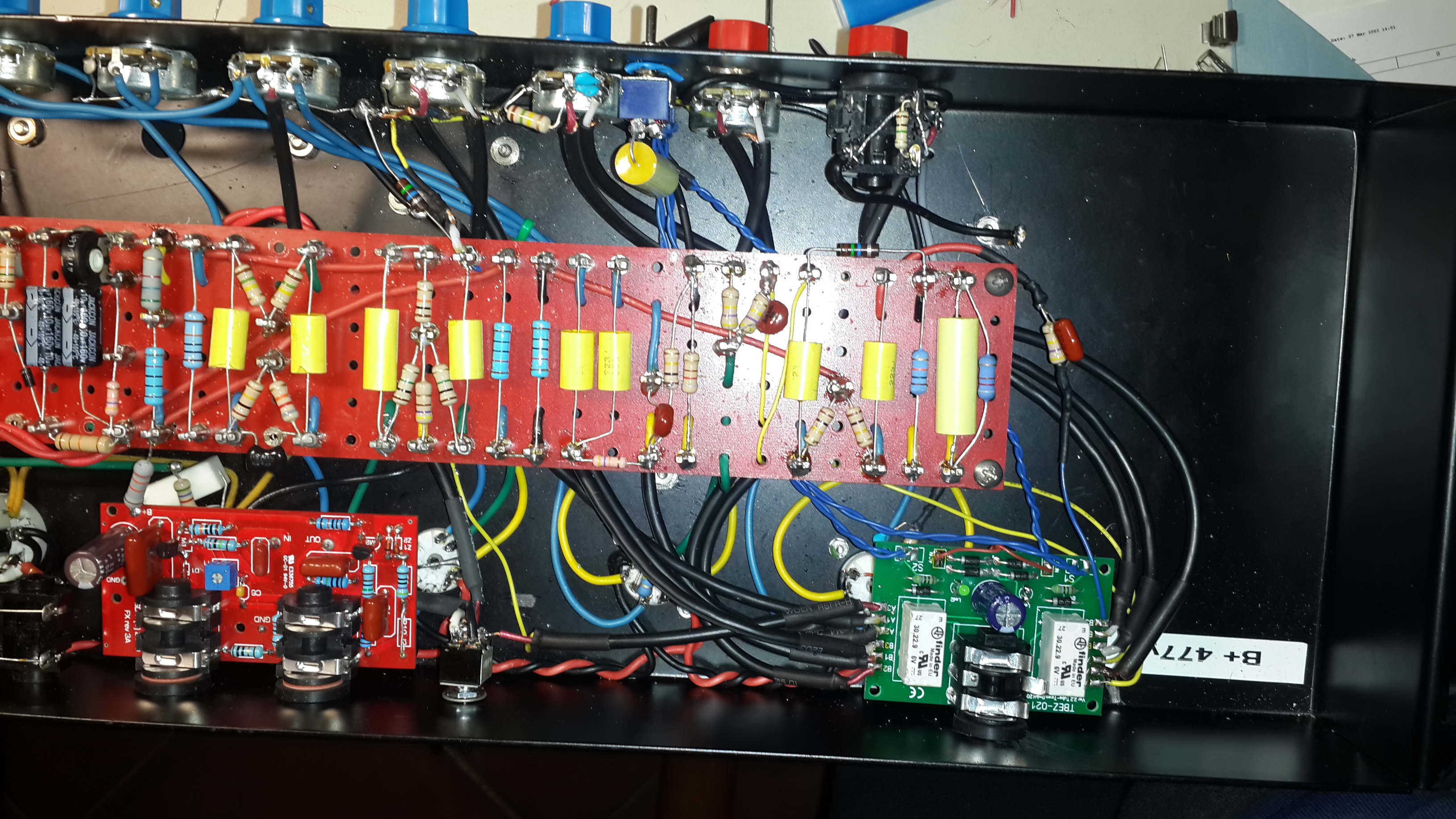 come prima cosa, porto la testata nuovamente monocanale e vedo com'è la situazione in termini di sound e rumori di fondo. se la situazione è ok rifaccio il cablaggio per il doppio canale. non verrei che la piastra dei relè messa sopra v1 mi dia un sacco di rumore.