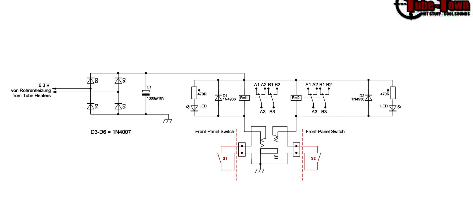 la schedina dello switch come detto prima è quello di tube town, le uniche mod che ho fatto sono il cap in parallelo allo switch e i due rele che funzionano insieme ( ho unito il tap e il ring del jack)