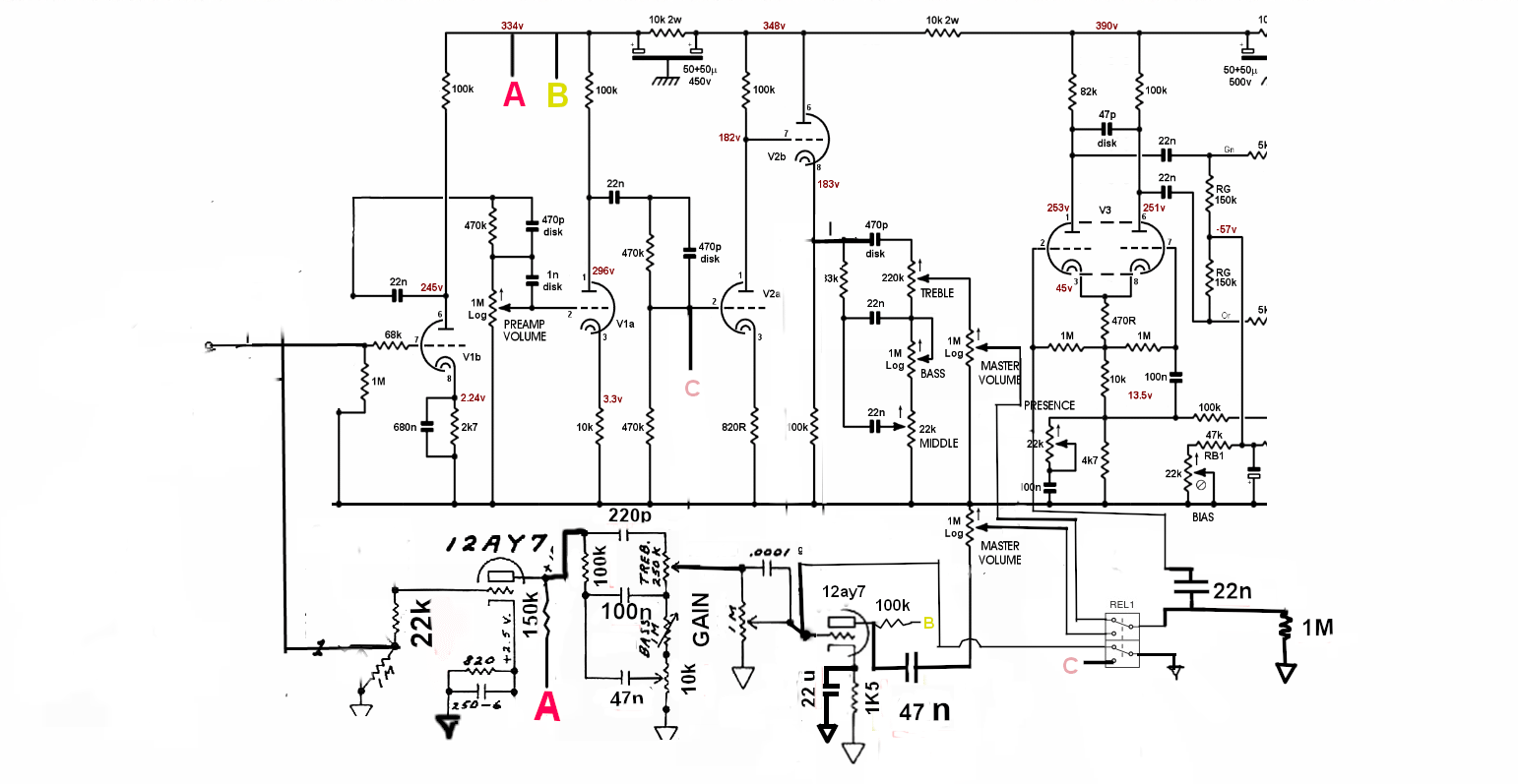 aggiungendo una sola 12ay7 cercavo di avere almeno un preamp fender
