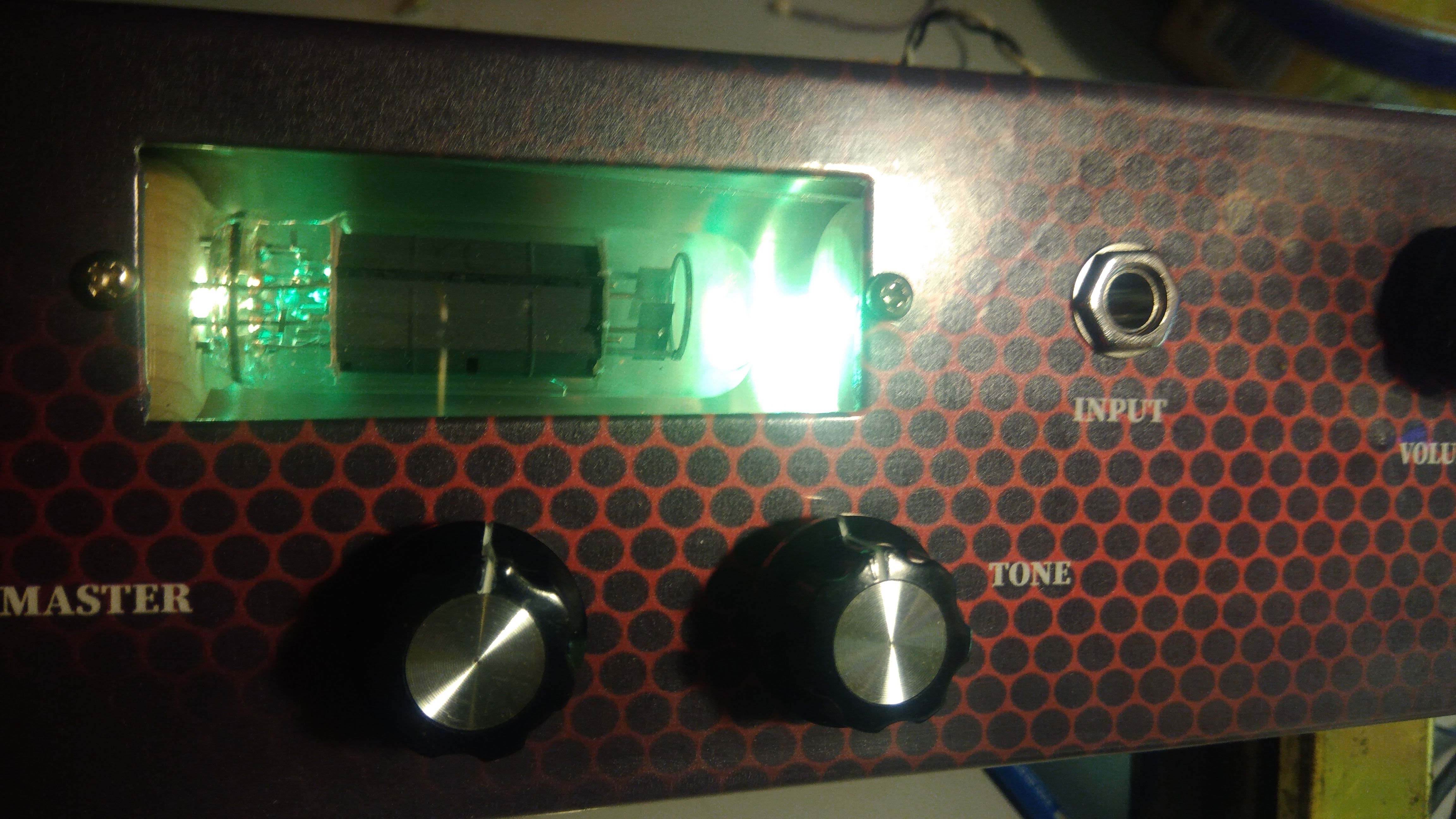 In fase di costruzione avevo la ferritoia del modulo del lettore USB che mi ha ispirato mettendo una valvola a vista, la PCL 82 scalda molto e quindi non volevo metterla dentro un vetro e un carter di alluminio, avevo una valvola ormai esaurita che avrei gettato nel secco non riciclabile....un led sopra e uno sotto e ho creato una specie di lampada spia :face_green: