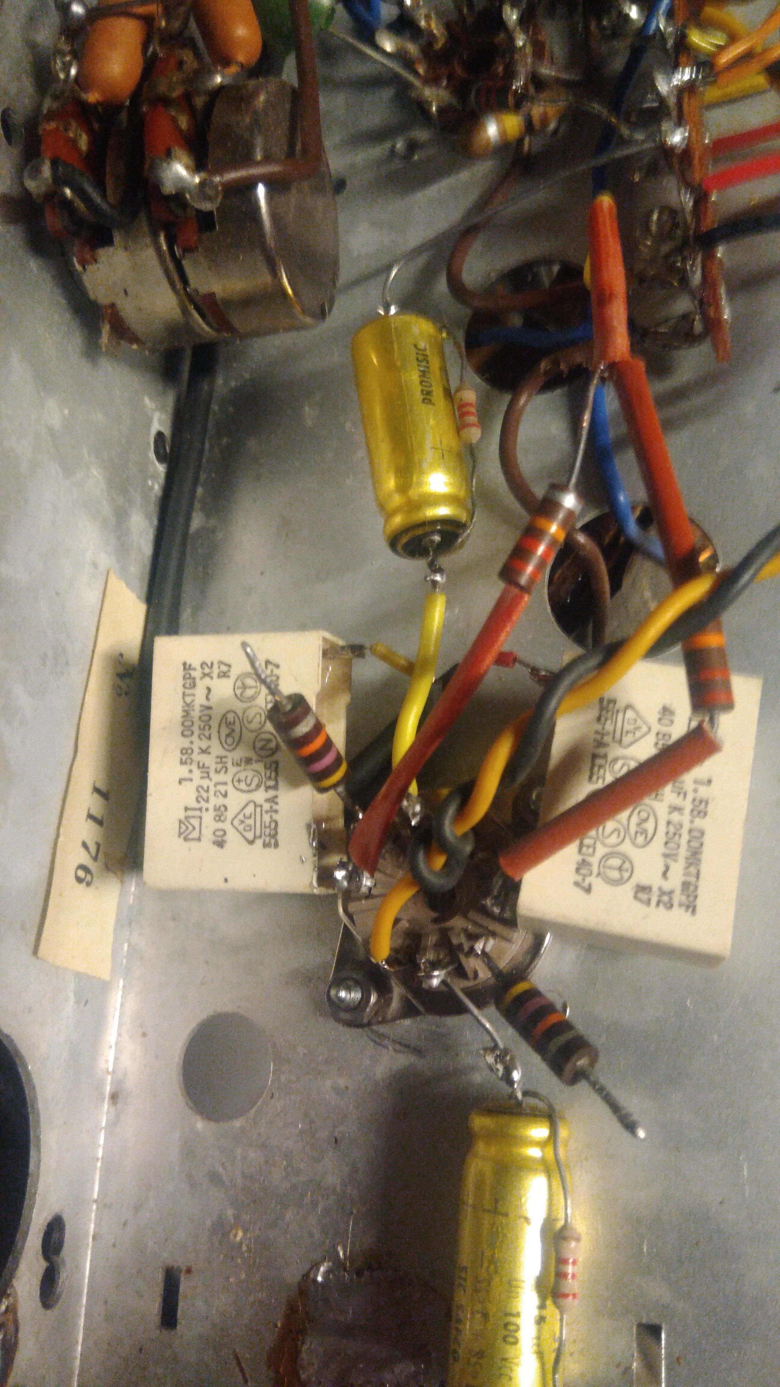 Eliminato anche il condensatore da 50 x 3 microfarad pensavo di sfruttare lo spazio vuoto per inserire una ECC83 come preamplificatrice 1/2 per canale...
