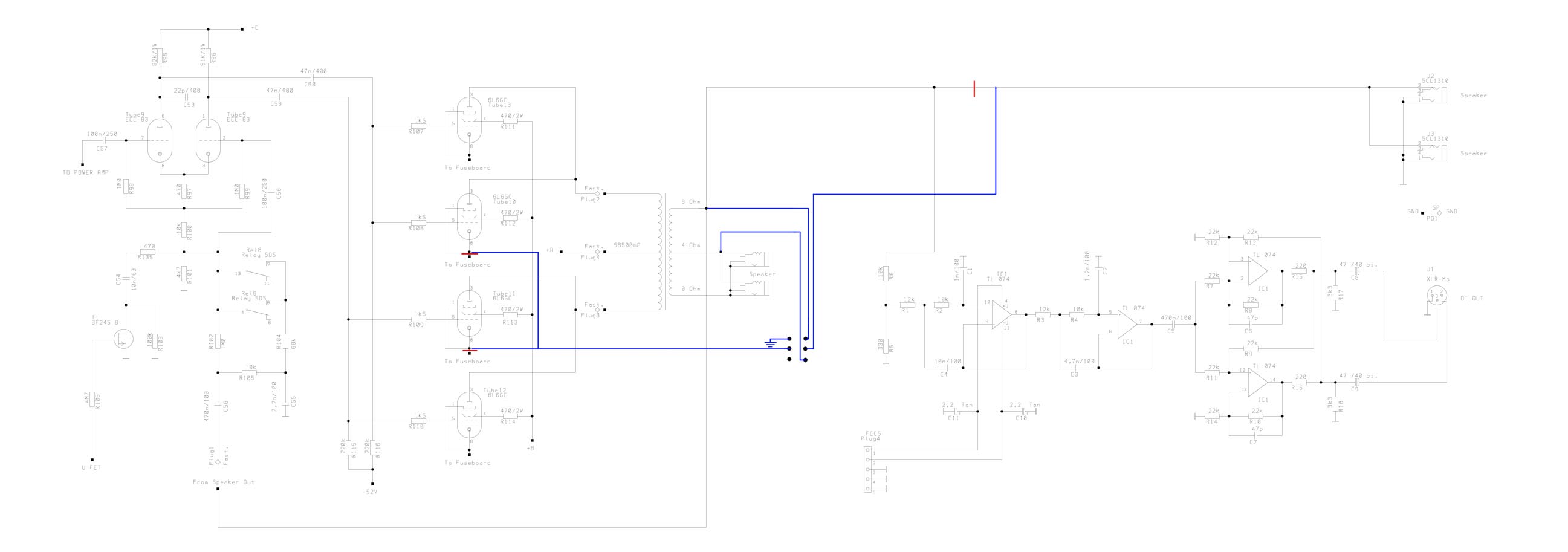 Un'ultima considerazione: quando effettui il cambio di impedenza, il NFB (negative feedback, il cavo che torna dal secondario del TU verso la phase inverter segnato "from speaker out") si "sposta", il che potrebbe portare a qualche (probabilmente piccolo) cambio di voicing del finale, quindi potresti fare in modo che si adatti "da solo" anche questo cavo (stesse considerazioni fatte per la cassa)