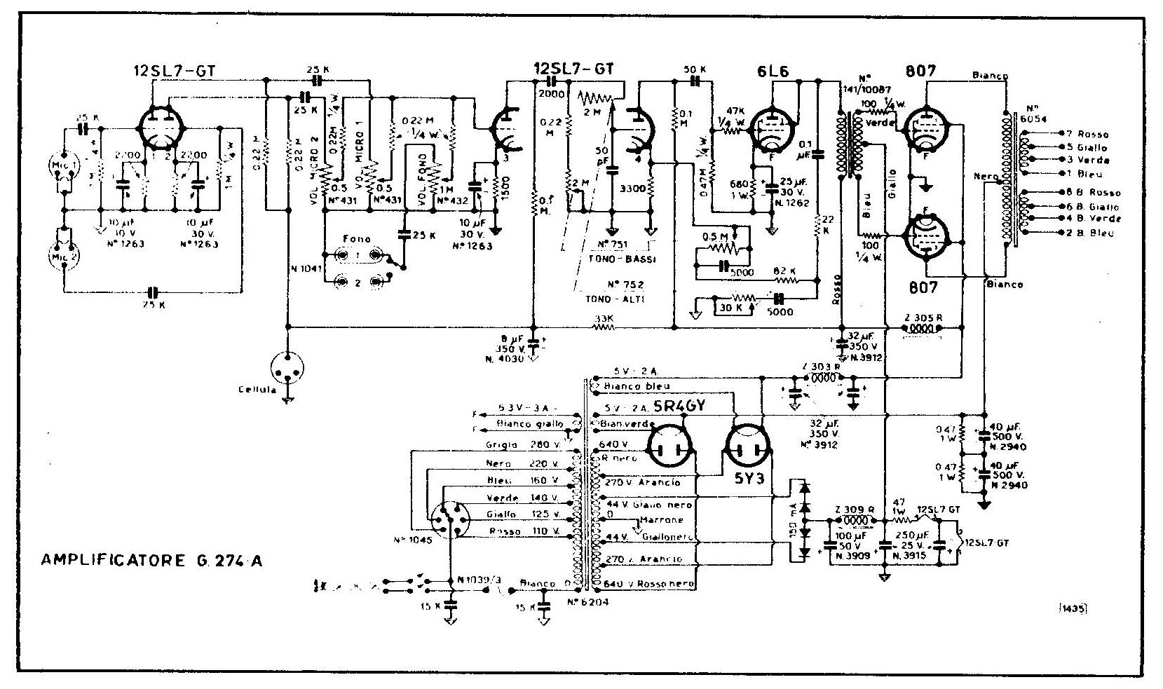 6l6 visto che lo copio al fender,senti, visto che e' molto che non lavoro, volevo utilizzare un trasf. d'uscita che ho da secoli ed era di un Geloso G274a 70W P.A. con p.p. di 807,anodica 700v, no ultralineare, essendo un p.a.(no hi-fi) ha un taglio frequenze max 10khz quasi simile ai blasonati per strumenti,ora non so l'impedenza,MA CHIEDO: avendo molte combinazioni in uscita da 1,5 a 500 ohm,se prendo l'uscita giusta, di riflesso riesco a cambiare anche l'impedenza di carico giusto?cosi' da adattarlo bene alle 6l6? che molti una volta le mettevano al posto delle 807,lo so lavorano a700v, ricordo forse era 6 kom anodo-anodo?se fosse, 4 speaker che danno collegati 8ohm,per fargli riflettere a questo mio t.u. l'impedenza giusta sugli anodi delle 6l6(4kom?),dove dovrei collegarli, su un imp.d'uscita piu alta o piu bassa?Scusatemi lo so questa e' tosta..una volta le sapevo fare ste cose,spero di essermi spiegato,visto che ho un hammond universale e si fa cosi',ma di questo non ho le specifiche ,sono convinto che interessera' a molti che riutilizzano i vecchi ampli italiani.Se risolvo questa sono a posto.ciao http://www.diyitalia.eu/forum/posting.p ... 24&p=81074#
