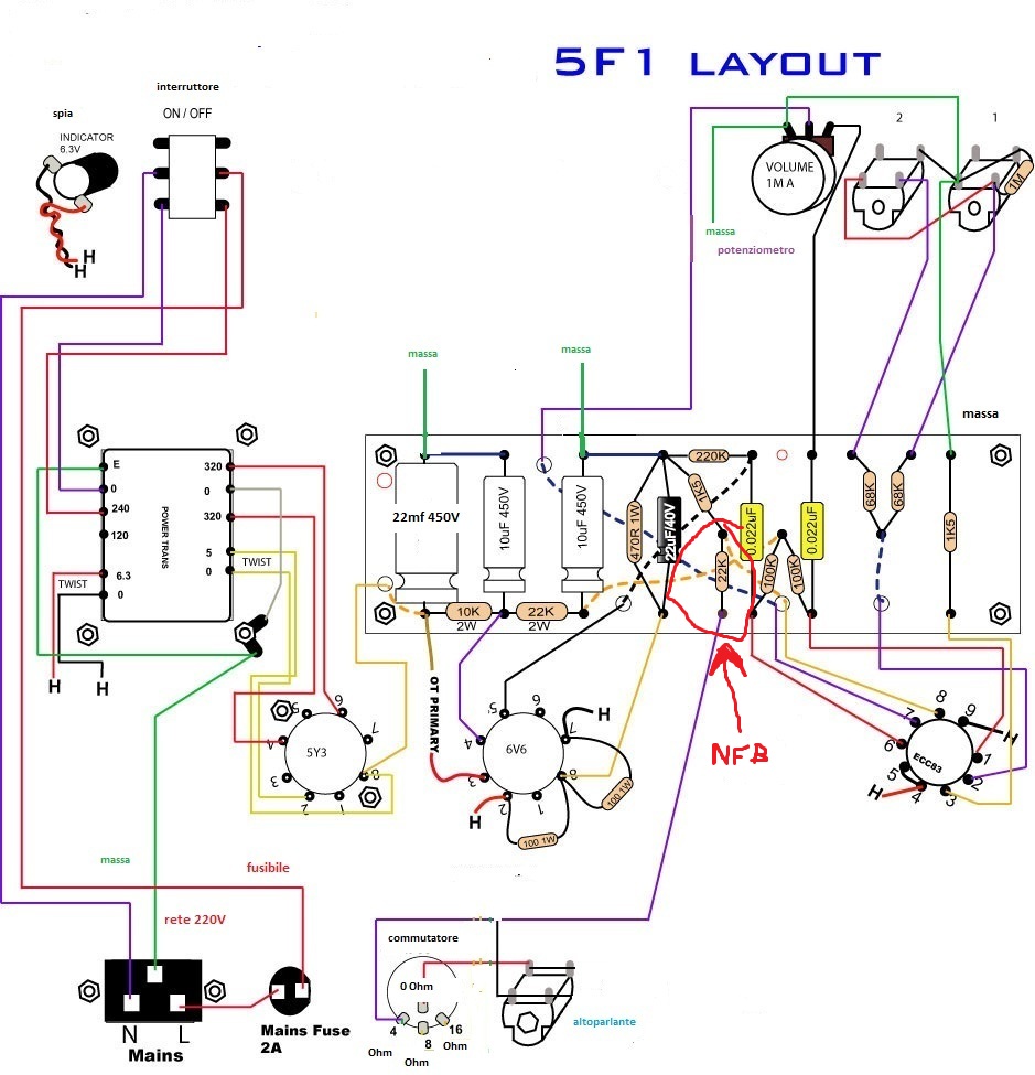 Salve a tutti ragazzi, dopo essermi cimentato nella costruzione del mio primo piccolo amplificatore il fender champ 5f1,e dopo averlo provato e riprovato ho deciso di capire meglio come funziona. mi spiego: visto che all'inizio non capivo un'accidenti di valvolare, grazie ai vostri consigli ed a layout da bambini ho eseguito un lavoro di montaggio pari pari a ciò che leggevo capendo passo passo ciò che mi spiegavate.