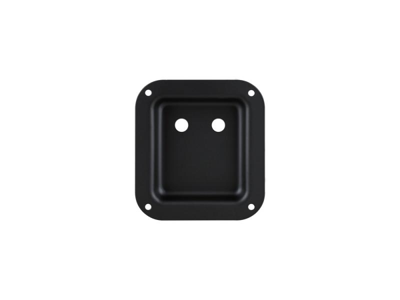 Se te la cavi con le lavorazioni del legno e del tolex potresti fare un taglio ad X sul tolex, dovresti poi sollevarlo (il tolex) staccandolo dal legno, quindi fai il foro rettangolare un po' più piccolo del coperchio in alluminio che hai, ripieghi il tolex in modo che copra il bordo di legno tagliato (e ce lo incolli), la piastrina in alluminio la monti dall'interno, facendo così eviti che piastra e dadi delle prese sporgano (io, comunque prenderei una piastrina come si deve ed eviterei tutto sto lavoro)