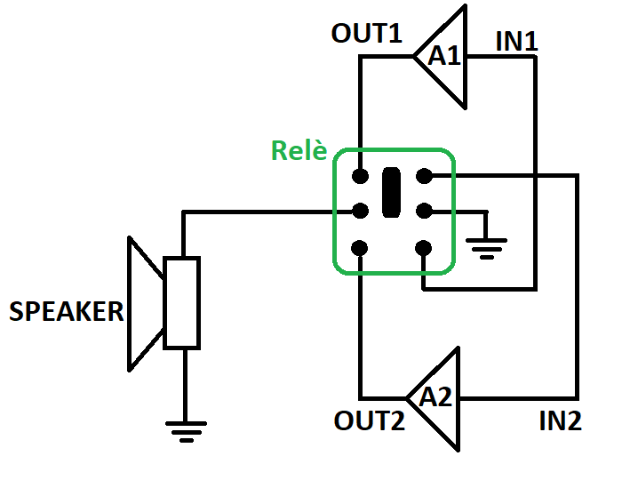 Se sono valvolari le cose si complicano perchè necessitano di un carico quindi il relè dovrà avere sempre i due contatti, uno che commuta l'altoparlante ed uno che commuta un carico fittizio verso l'uscita dell'ampli che non deve suonare, inoltre dovrai usare un terzo relè (oppure un unico relè con tre DPDT ma credo che non esistano) per mettere a massa l'ingresso dell'ampli che non usi così da non far nascere oscillazioni.