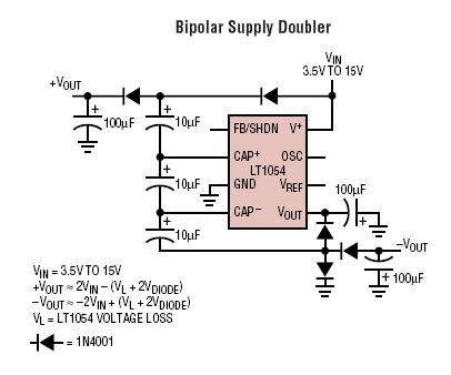 ho preso questo schema dal datasheet del LT1054, che è un IC come il Max1044 ma con un input fino a 15V e capace di erogare anche 100mA..