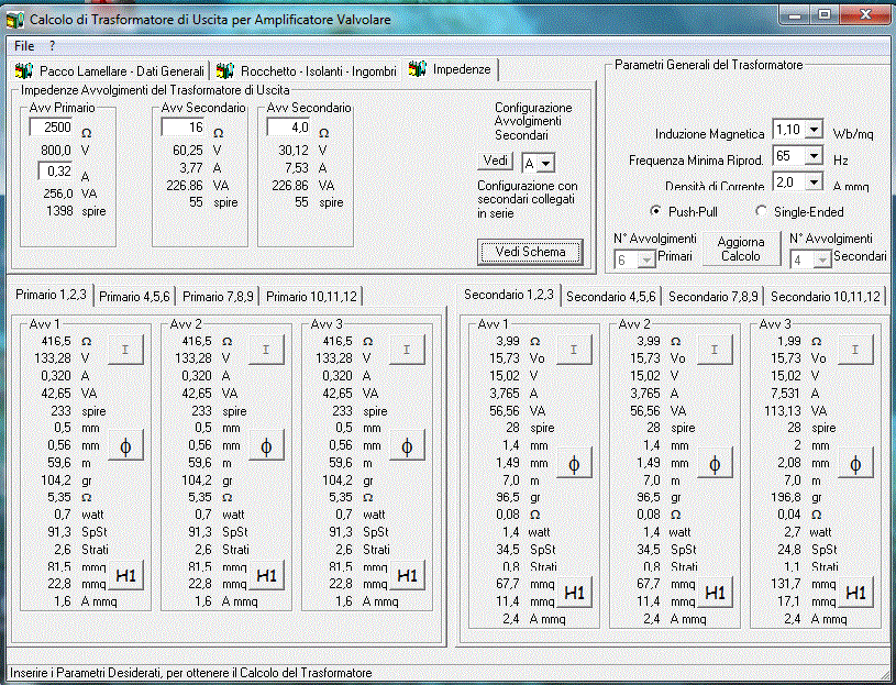 Poi i filamenti a 6,3V per le finali dovrebbero reggere intorno ai 3,5A, con filo da 1,35mm e qui non ci sarebbero problemi. mentre le valvole di pre andrebbero alimentate con i filamenti a 12Vdc su un avvolgimento dedicato.