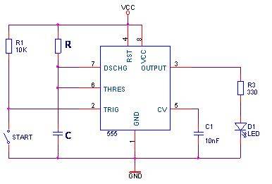 naturalmente al posto di "start" ci sarà un relè a 220V pilotato dalla chiusura del circuito del motore elettrico e al posto del led ci sarà un relè a 12V per chiudere il contatto del pulsante/deviatore che comanda il temporizzatore della luce...