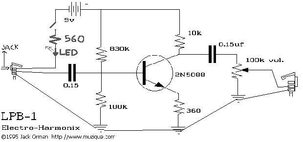 Nel link trovi lo schema del booster lpb-1 dell' electro harmonix. Allora per quanto ho capito dovrei prendere una basetta, montarci il necessario e collegarlo con fili di rame. Posto che conosco condensatori, resistenze e generatore, avrei alcune domande sul resto: