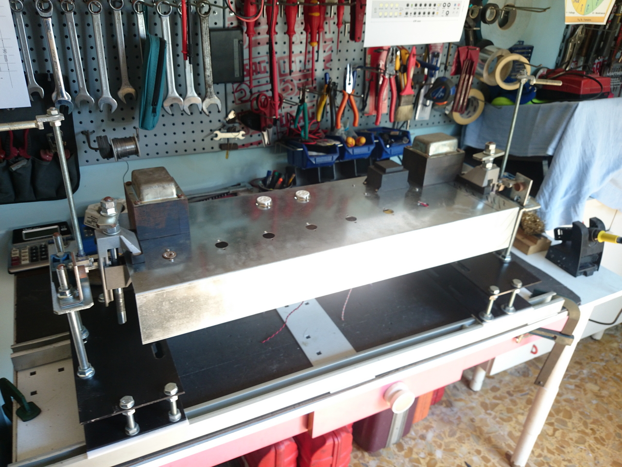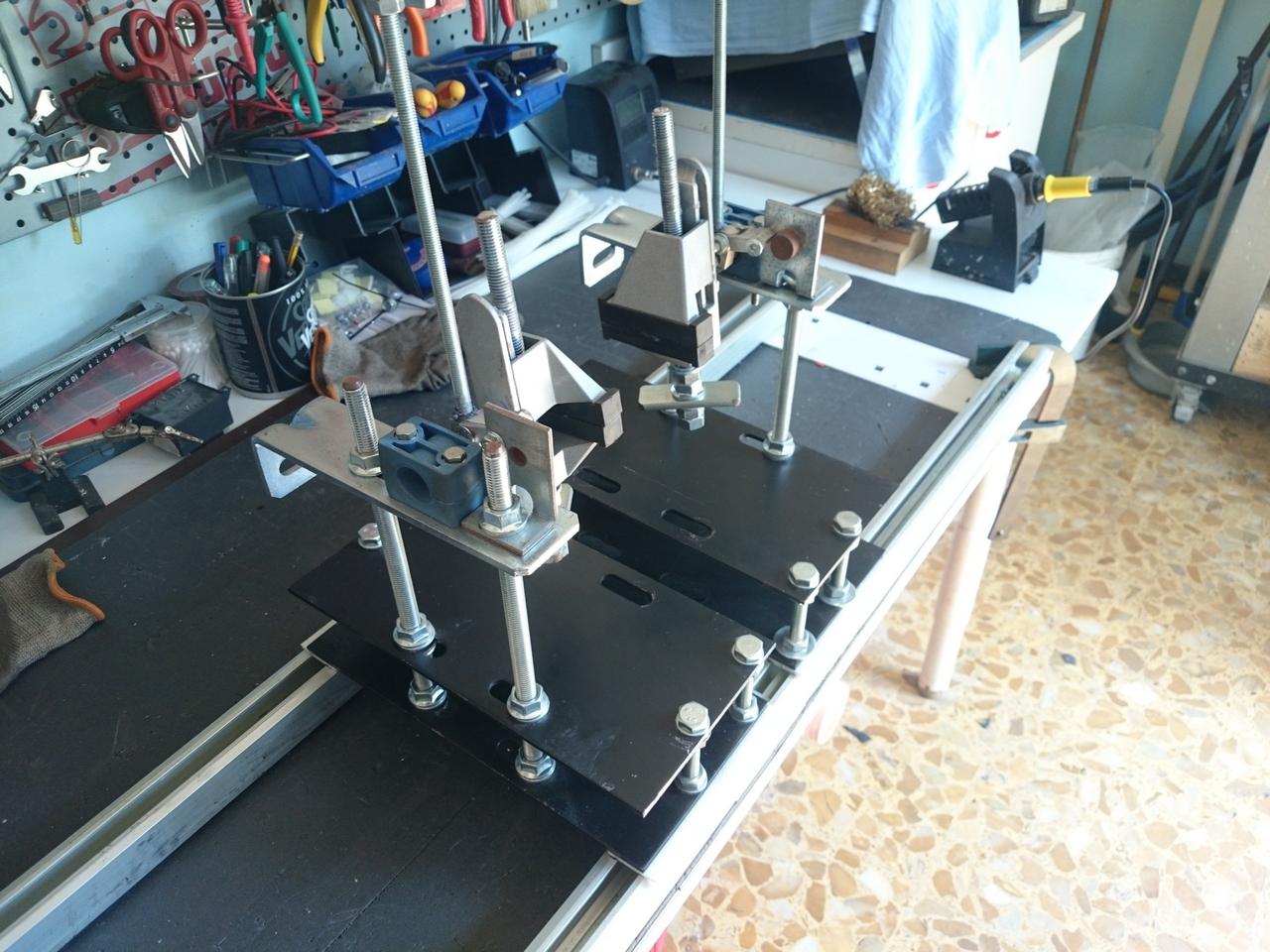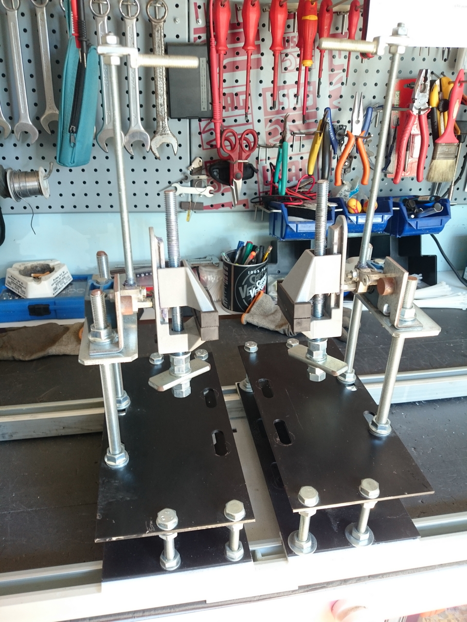 Grazie Robi. Stavo pensando di metterci anche una terza morsa sulla parte inferiore asolata sinistra e un morsetto per cuscinetti ( uguale a quello blu che fa girare le morse) sul lato inferiore asolato destro.