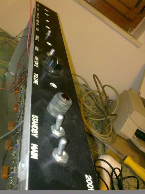 Amplificatore iniziato e mai terminato Hiwatt 200W, lo stavo costruendo assieme ad un collega che suona il basso nei ritagli di tempo (siamo entrambi tecnici elettronici), ma i ritagli erano così pochi che lui ha fatto in tempo ad andare in pensione.