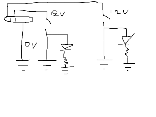 Forse ho capito cosa intendi con il "mando a massa", lo switch chiude il contatto di massa, quindi dovrebbe essere qualcosa del genere: