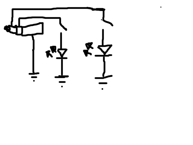 Ecco , posto due bozze ,scusate la mano libera ma con il touch non ci prendo :) in pratica il circuito funziona correttamente solo se metto i led in serie all'interruttore !?