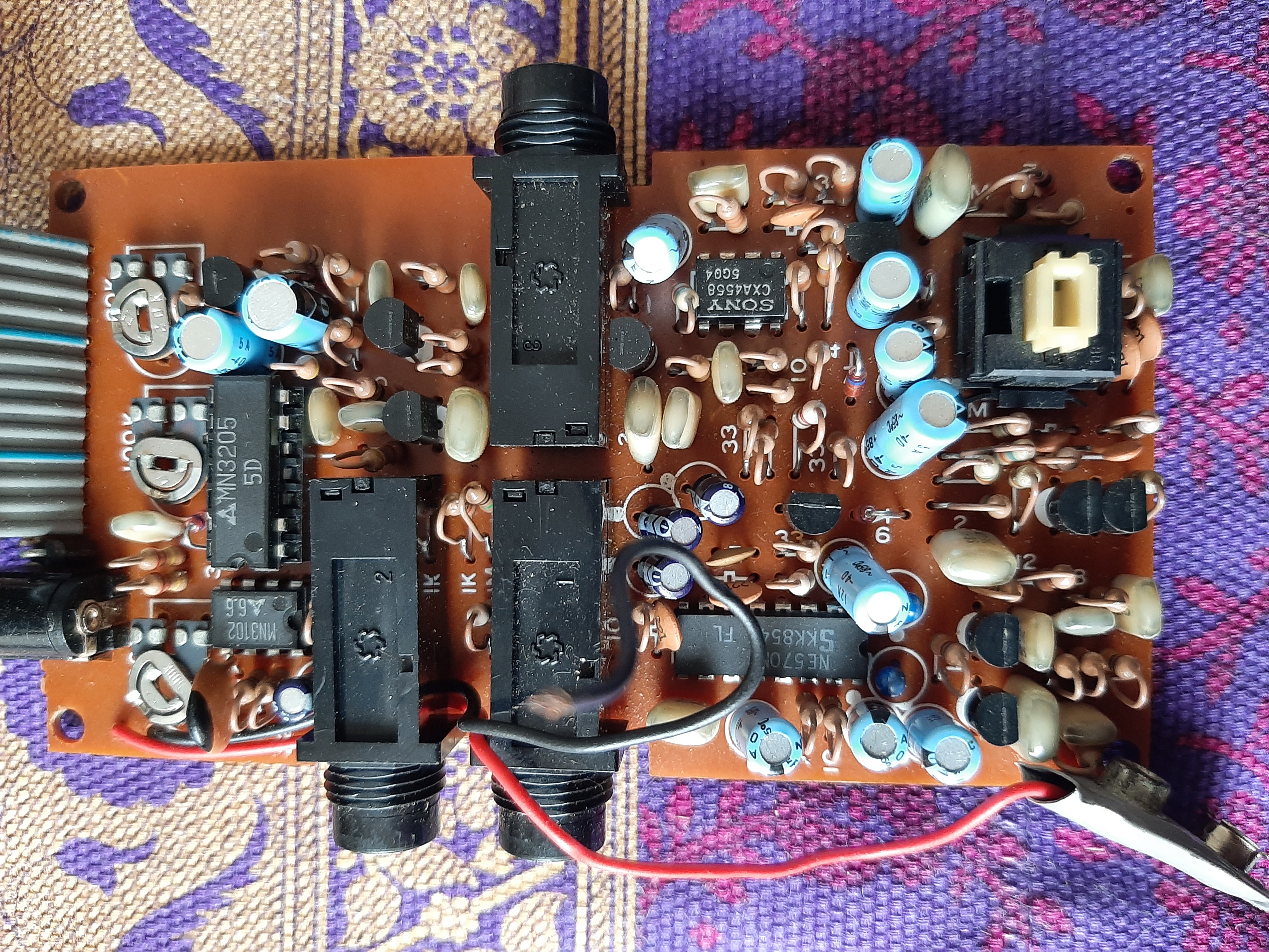 Ragazzi aiuto! Ho quest bel delay analogico dell'aria ieri mi sono reso conto che non funziona più! Qualcuno ha lo schema? Lo collego il led non si accende e chiaramente non passa alcun segnale neanche quando è disattivato. Aprendolo ho trovato il negativo della batteria staccato all'altezza del plug ma non credo sia il problema.