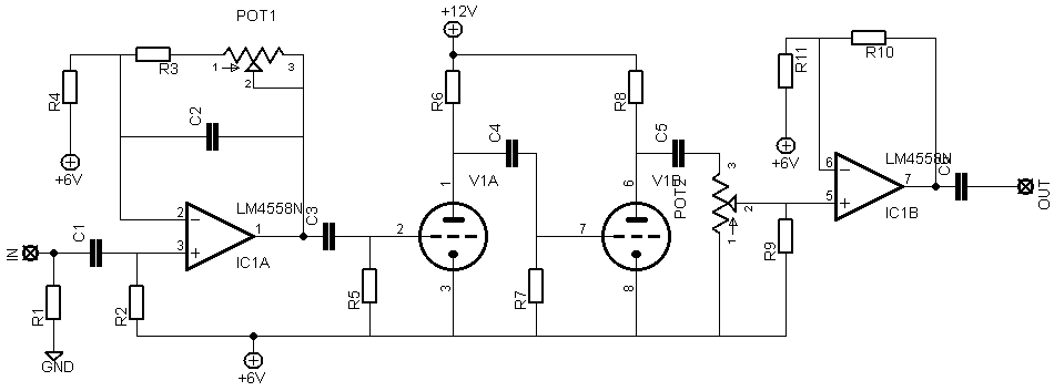 5. Luix, nel suo progetto del valvenstein aveva notato che con una resistenza da 1M alla griglia della valvola non aveva valori ottimali di tensione di placca, aveva risolto usando una resistenza da 180k, puoi fare la prova sostituendo quelle resistenze